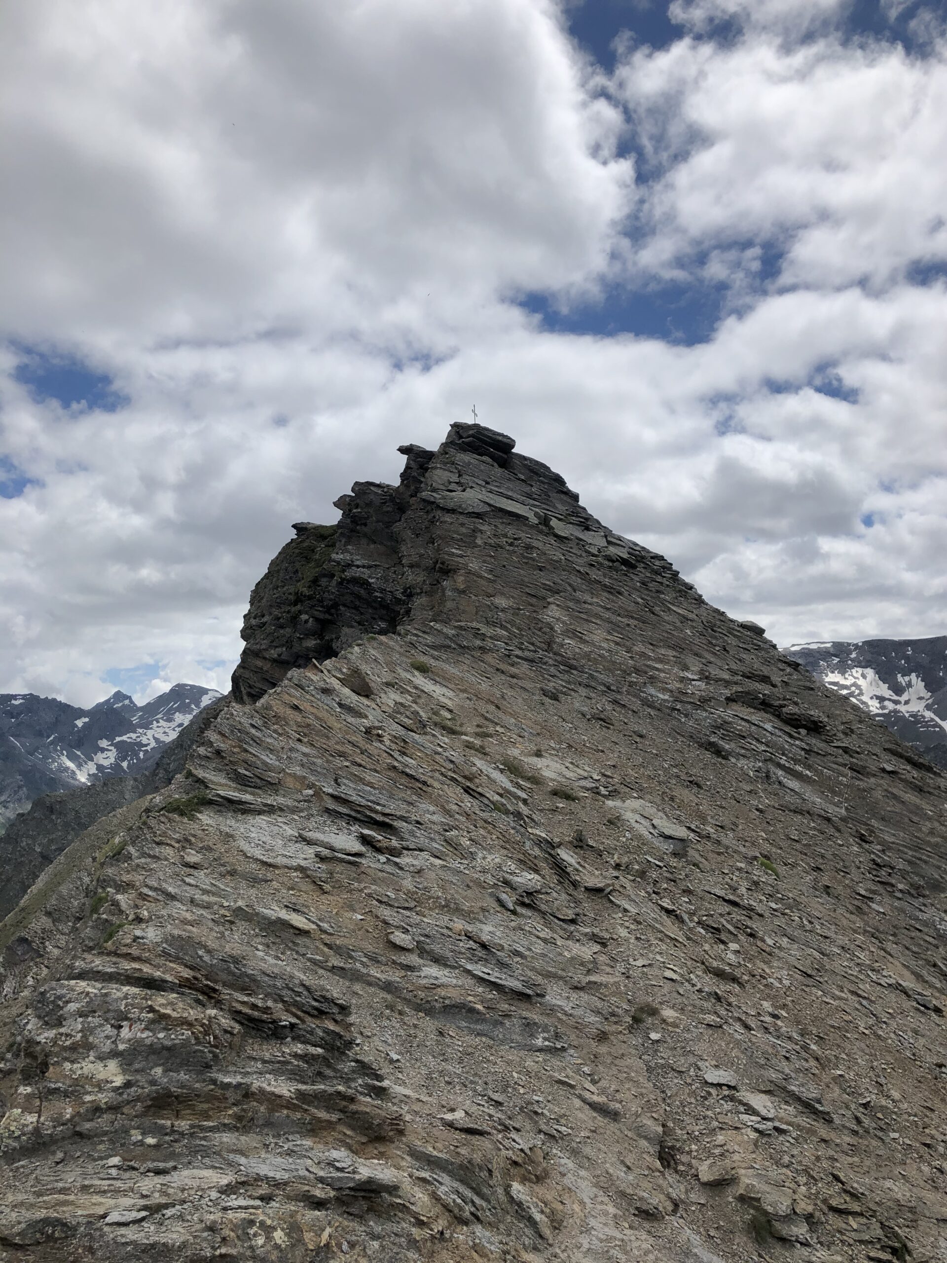 Dalle Druges Damon salire facendo qualche taglio al sentiero n14 che porta all incrocio di Prapremier, da qui seguire il sentiero che porta al col Crotey. Dal Col Crotey il sentiero non c’è più quindi seguire più il filo di cresta per evitare la pietraia fino al col belfront (si avrà sempre la Plan Rue in vista), arrivati al col Belfront e quindi sotto la parete nord-ovest, cominciate a risalirla prima su facile roccette poi su grossi sassi si arriva sotto una grossa placca liscia aggirarla sulla destra e continuare a risalire su detriti un po’ instabili. Dopo una facile arrampicata si arriva alla cresta finale bella esposta dal lato Fenis che porta alla croce di vetta.