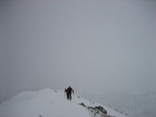 Partenza dalla macchina con aria gelida, per fortuna poco dopo aver lasciato le piste si stava meglio, più su la situazione però cambiava di nuovo e faceva ben freddo con visibilità molto scarsa.. Circa 5-10 cm di neve fresca su fondo duro su tutto il percorso, a tratti anche qualcosa di più ma più che altro riportata dal vento. Anche a scendere visibilità pessima soprattutto nella parte alta, dove la neve era anche rovinata dal vento, più in bassso andava meglio. Utili i coltelli in alcuni tratti..