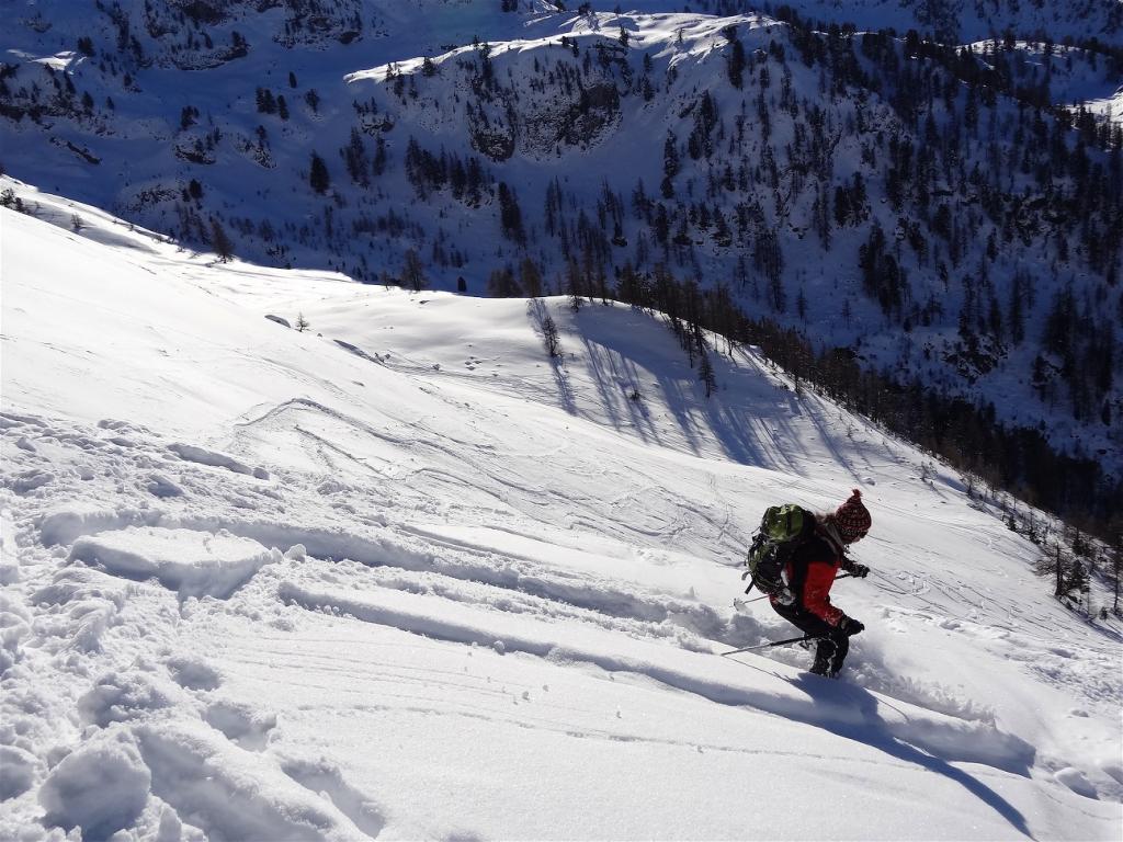 saliti direttamente dal Tremplin del Monginevro e scesi dal canale, alquanto tracciato, ma ancora divertente per la buona qualità della neve, per lo più asciutta