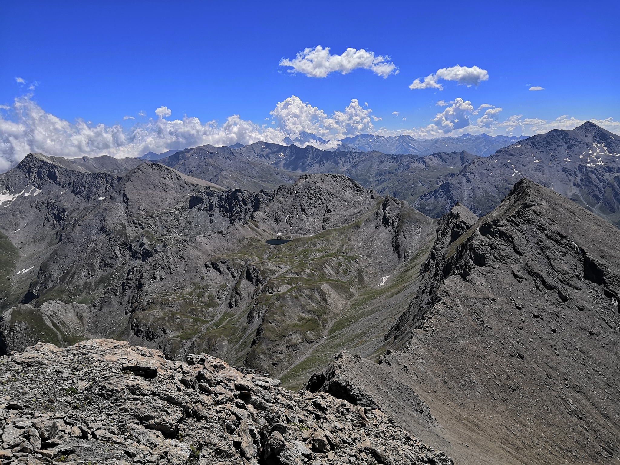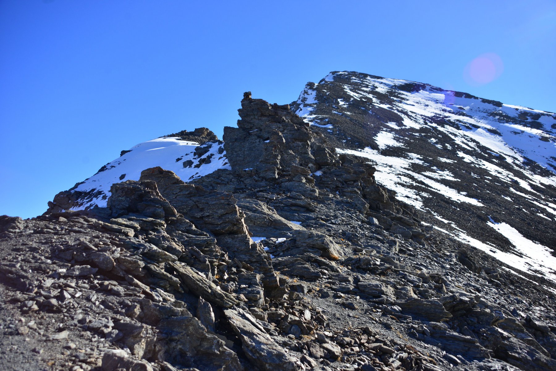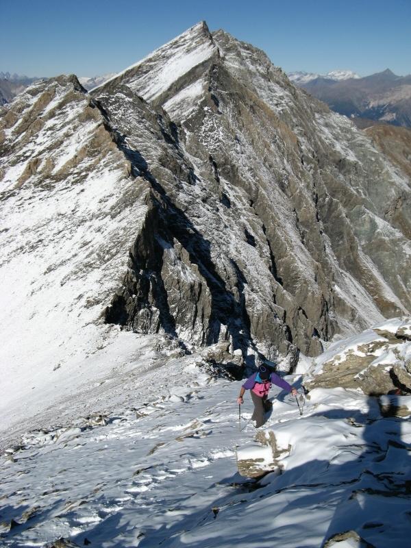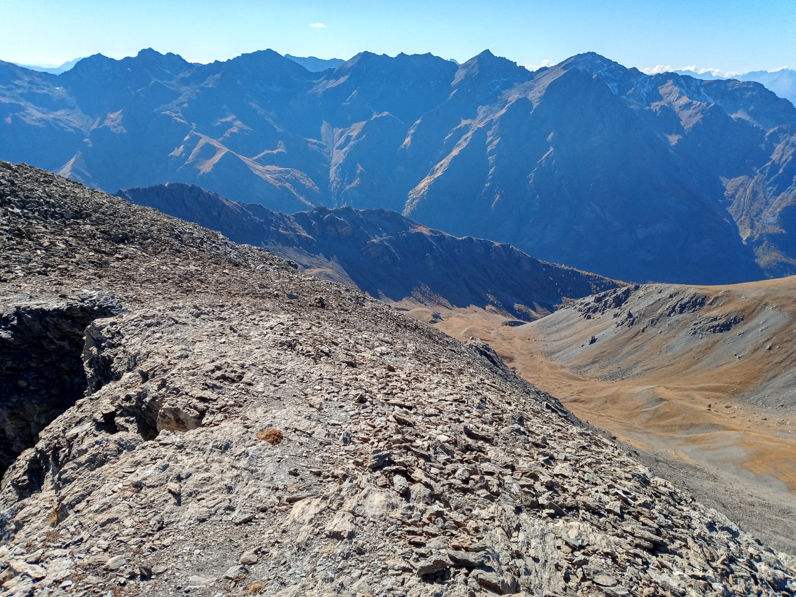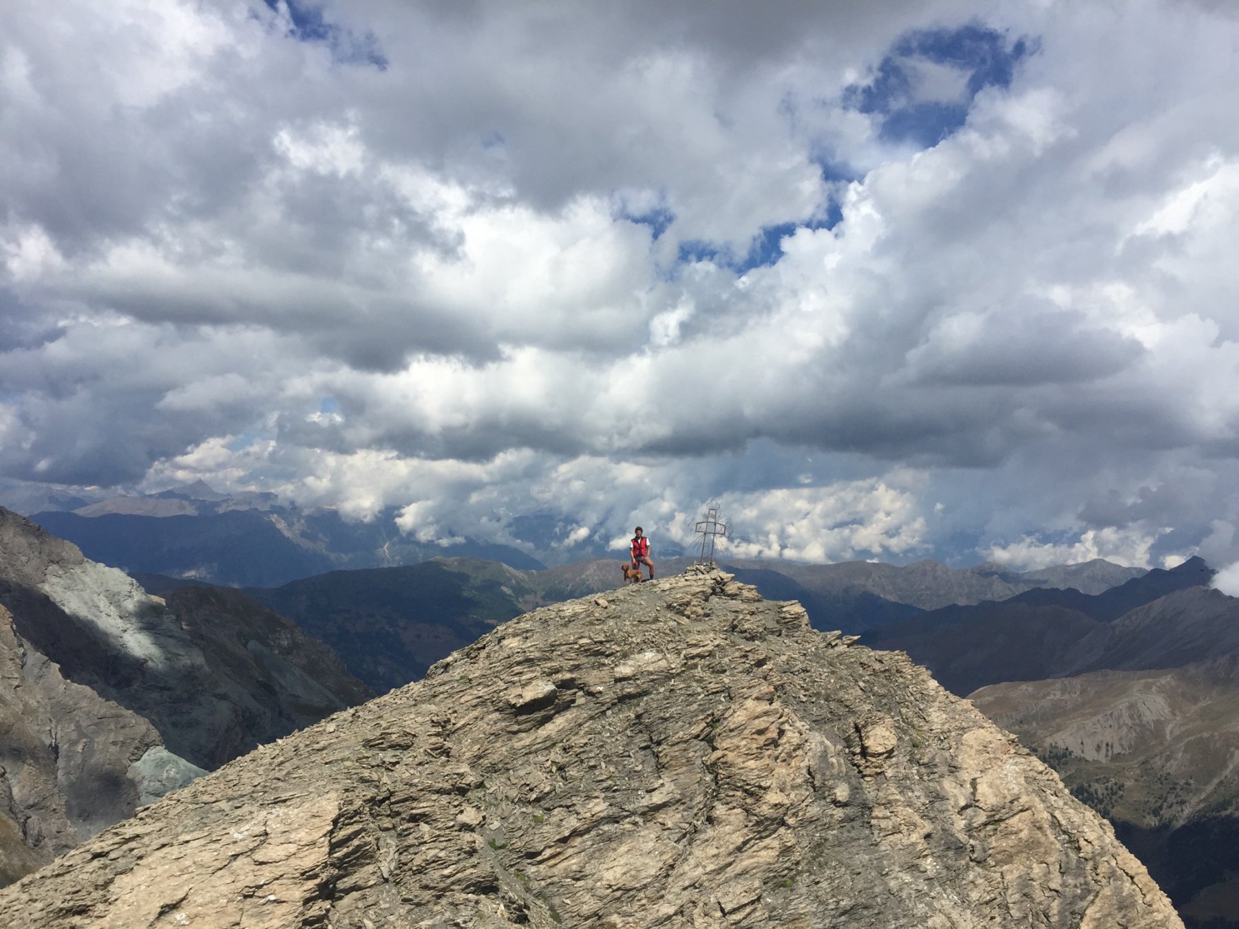 Giunti al colle, abbastanza verticale sul lato della Val Troncea, si sale per cresta ampia ed elementare, oppure per una traccia poco sotto il filo fino alla cima raggiungibile in 15-20 minuti.