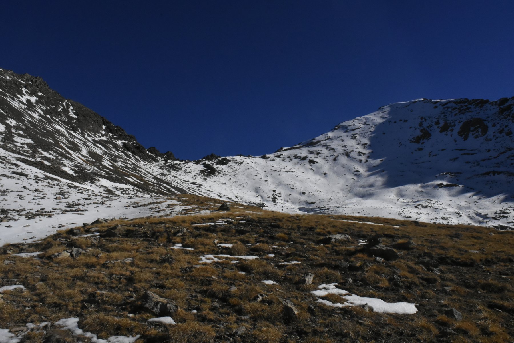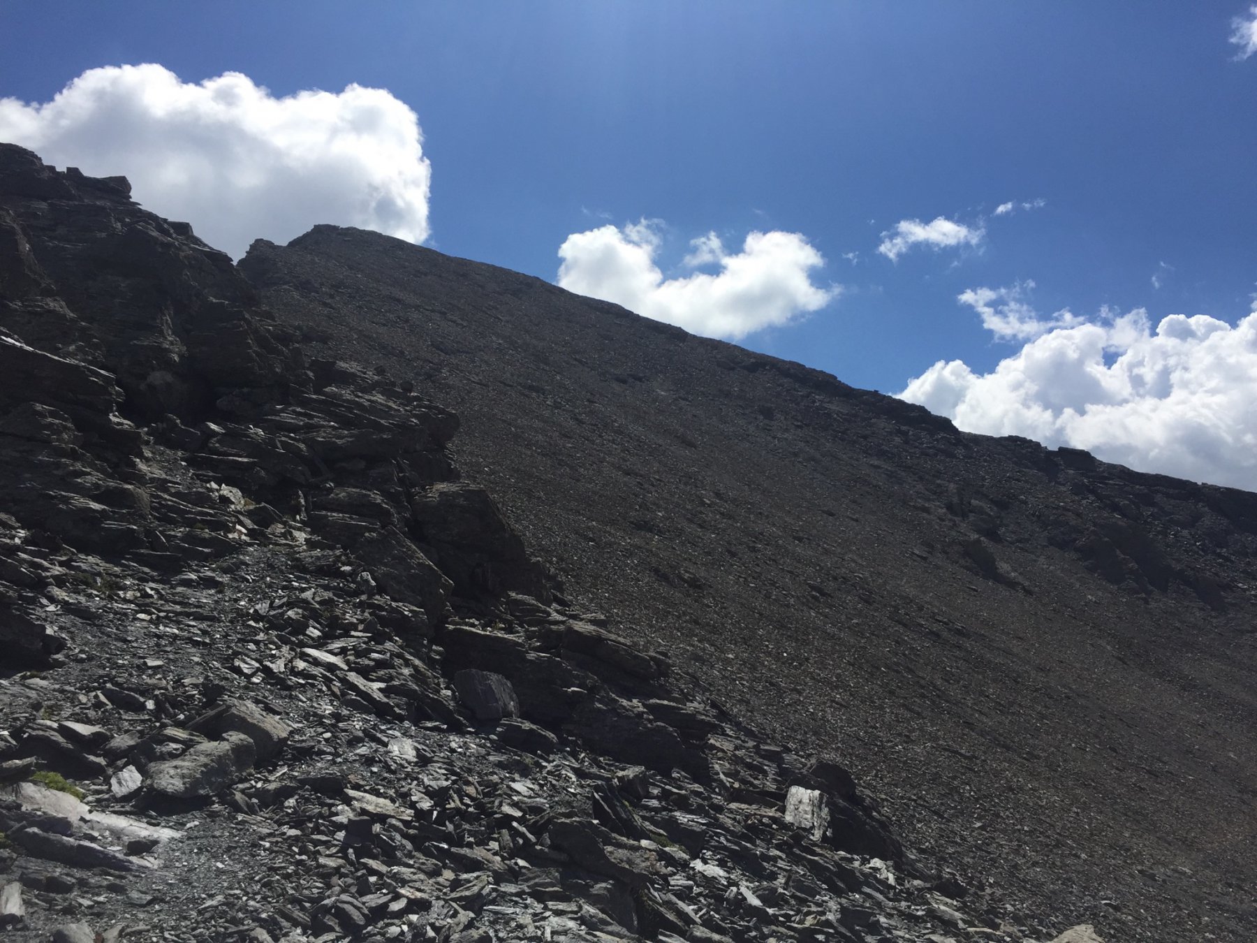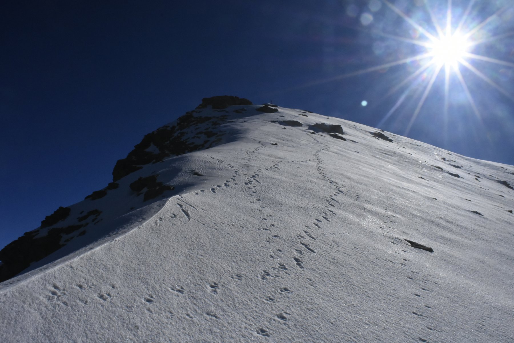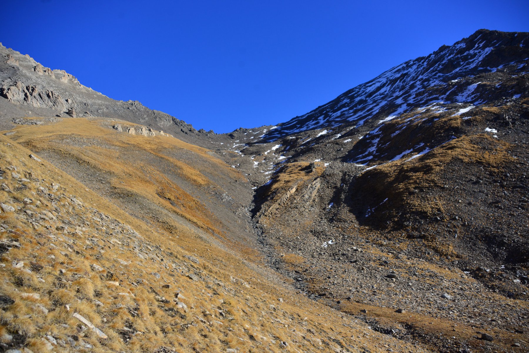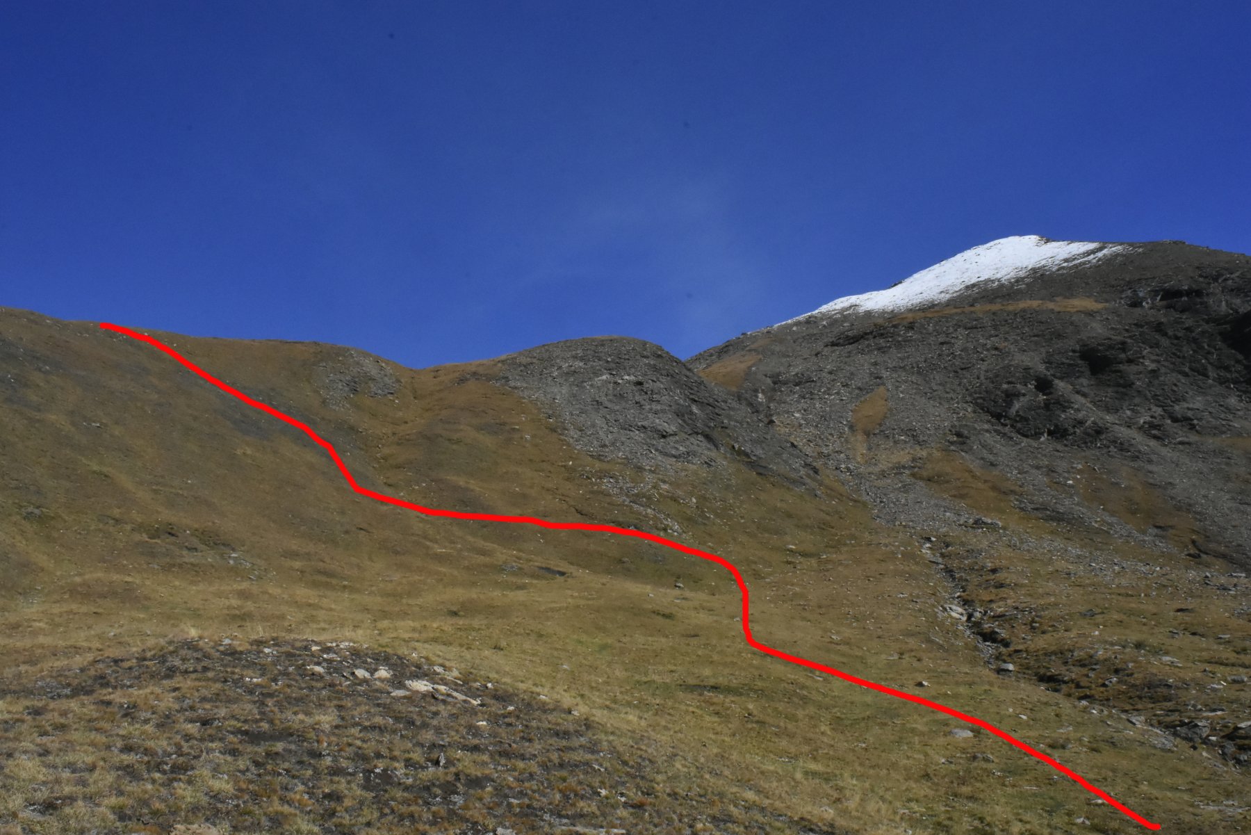 La traccia è abbastanza visibile solo negli ultimi metri un po’ più ripidi sotto il colletto bisogna fare riferimento a degli ometti.