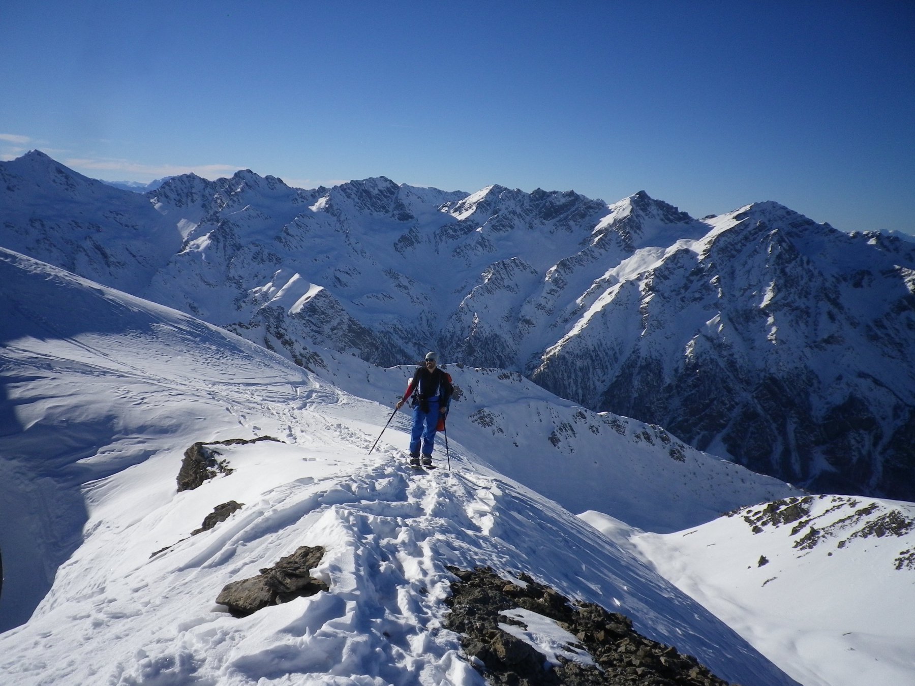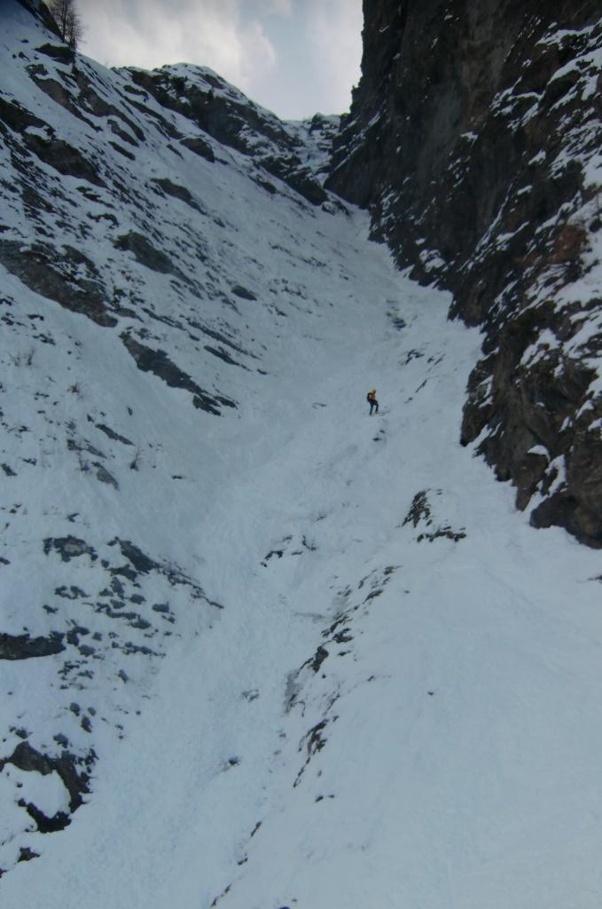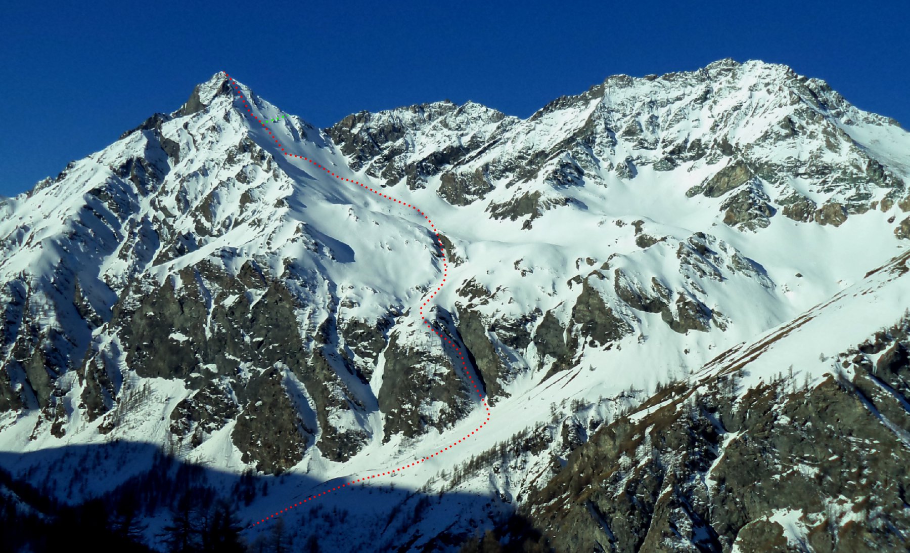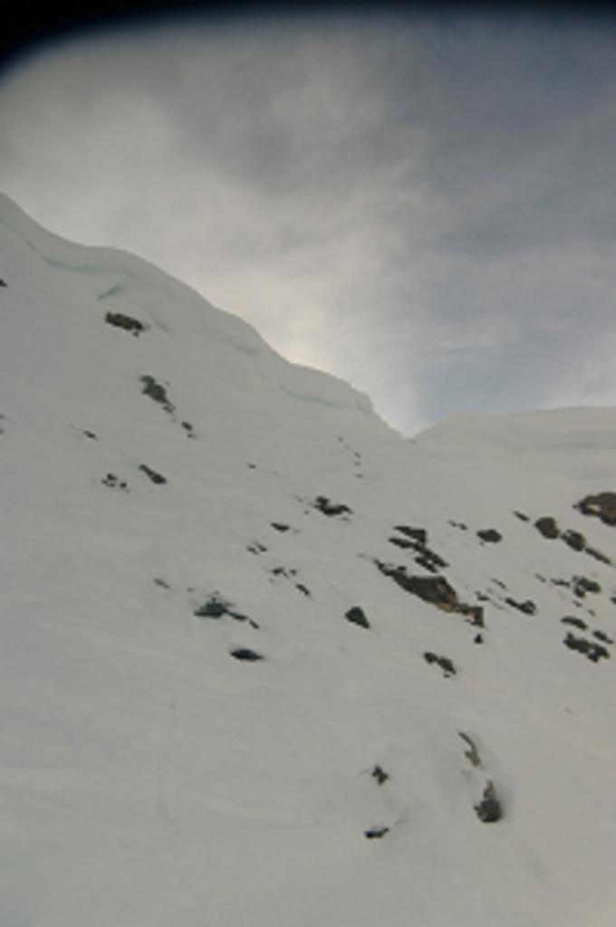 In discesa prestare attenzione ai primi metri che a causa della azione del vento possono diventare molto ripidi anche oltre i 45°.