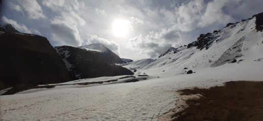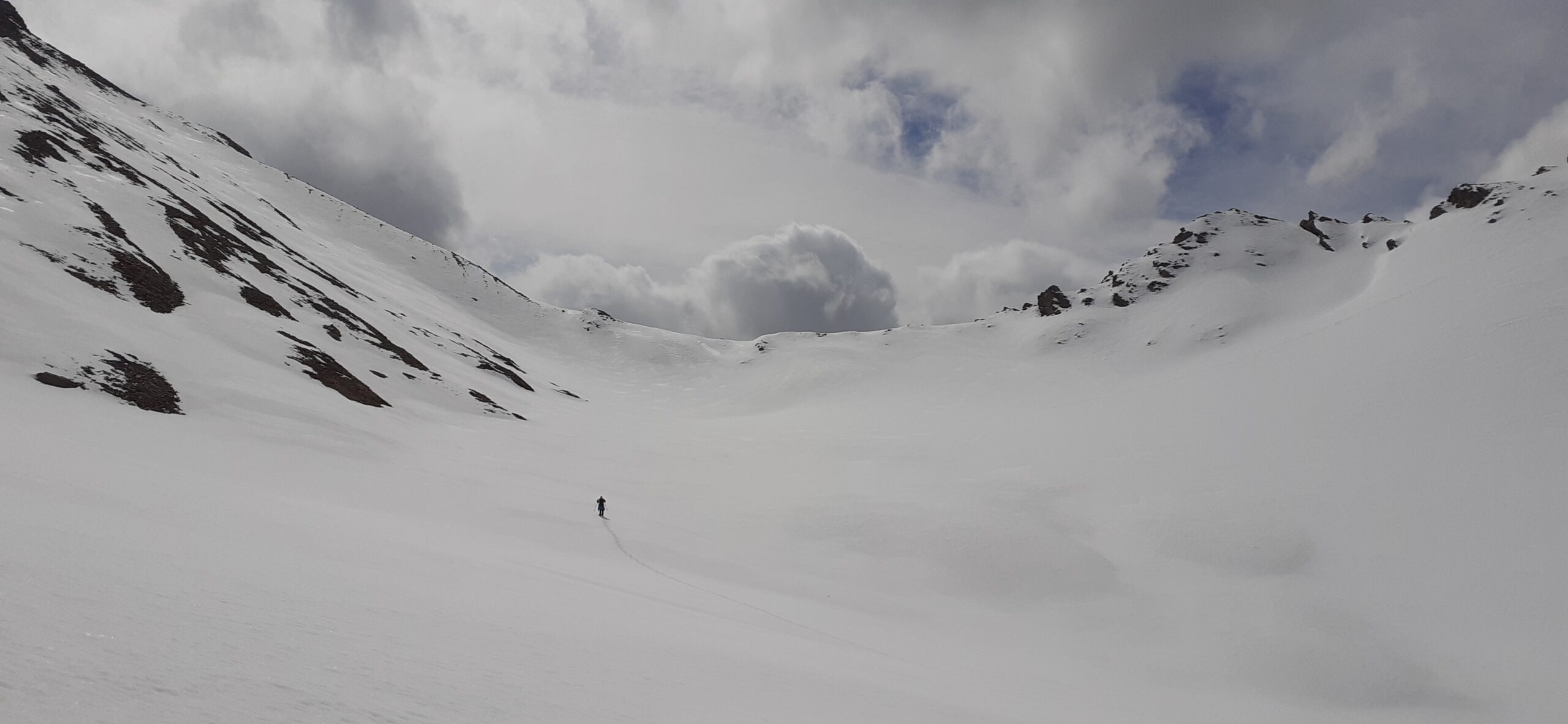 Partito ovviamente da Bessen Haut. Si spalla fino ad appena sopra il Bivacco Rattazzo. Parte superiore della gita con bella neve, in basso al mattino teneva ma dopo un paio d’ore già sfondava un po’