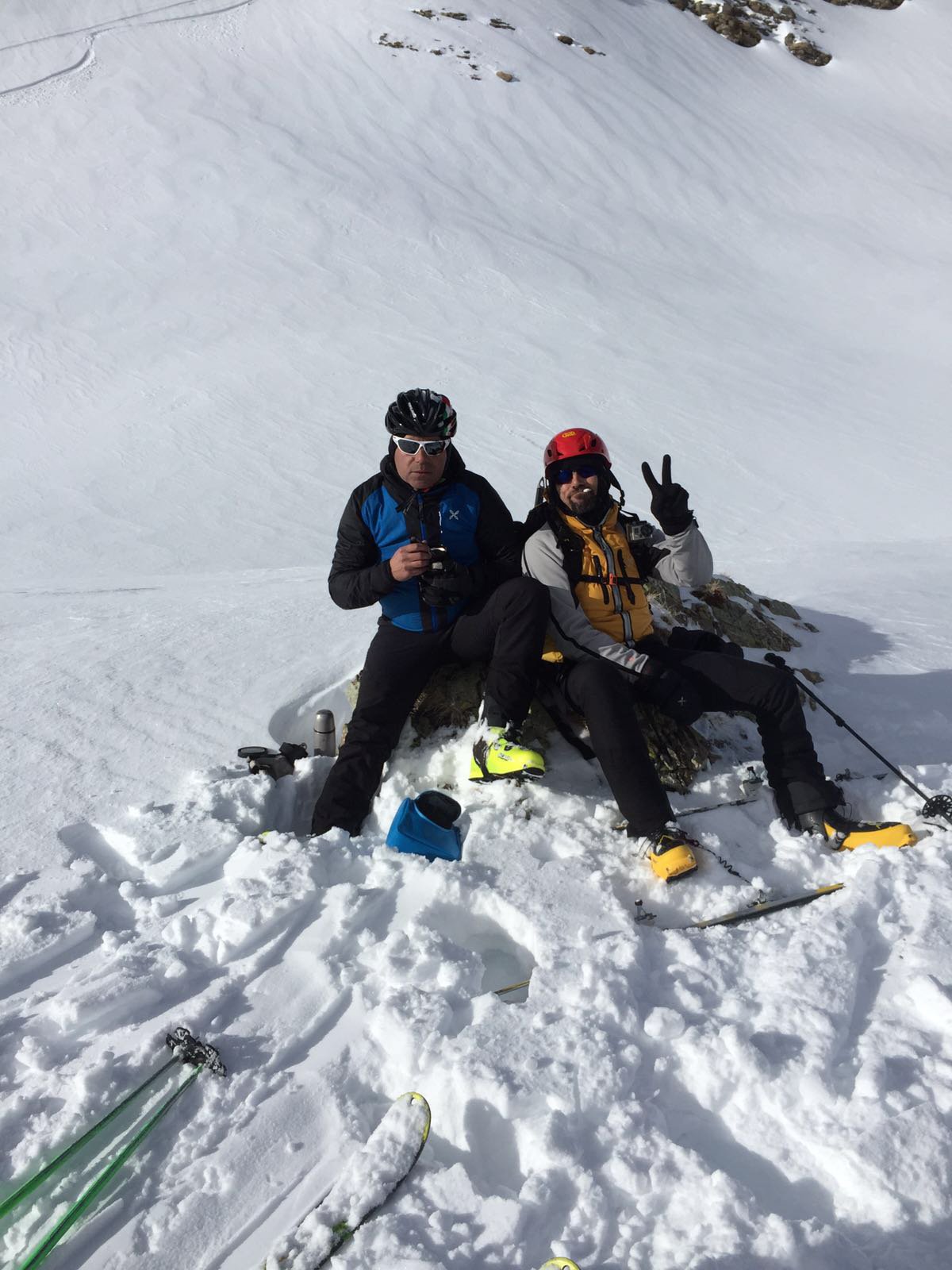 Che dire…….una favola! Neve perfetta da cima a fondo,buona traccia di salita fino in vetta da dive eravamo tentati di scendere per il vallone del Bec d’aigle ma dopo una ricognizione non mi sono fidato in quanto un po’ per l’esposizione ad est,un po’ per la pendenza ,che per una slavina c’era tutta, ed il vento del giorno prima abbiamo deciso di andare a prendere il suddetto vallone per concludere l’anello in basso al colletto.Comunque bello,solo noi su questo tracciato di discesa praticamente vergine….