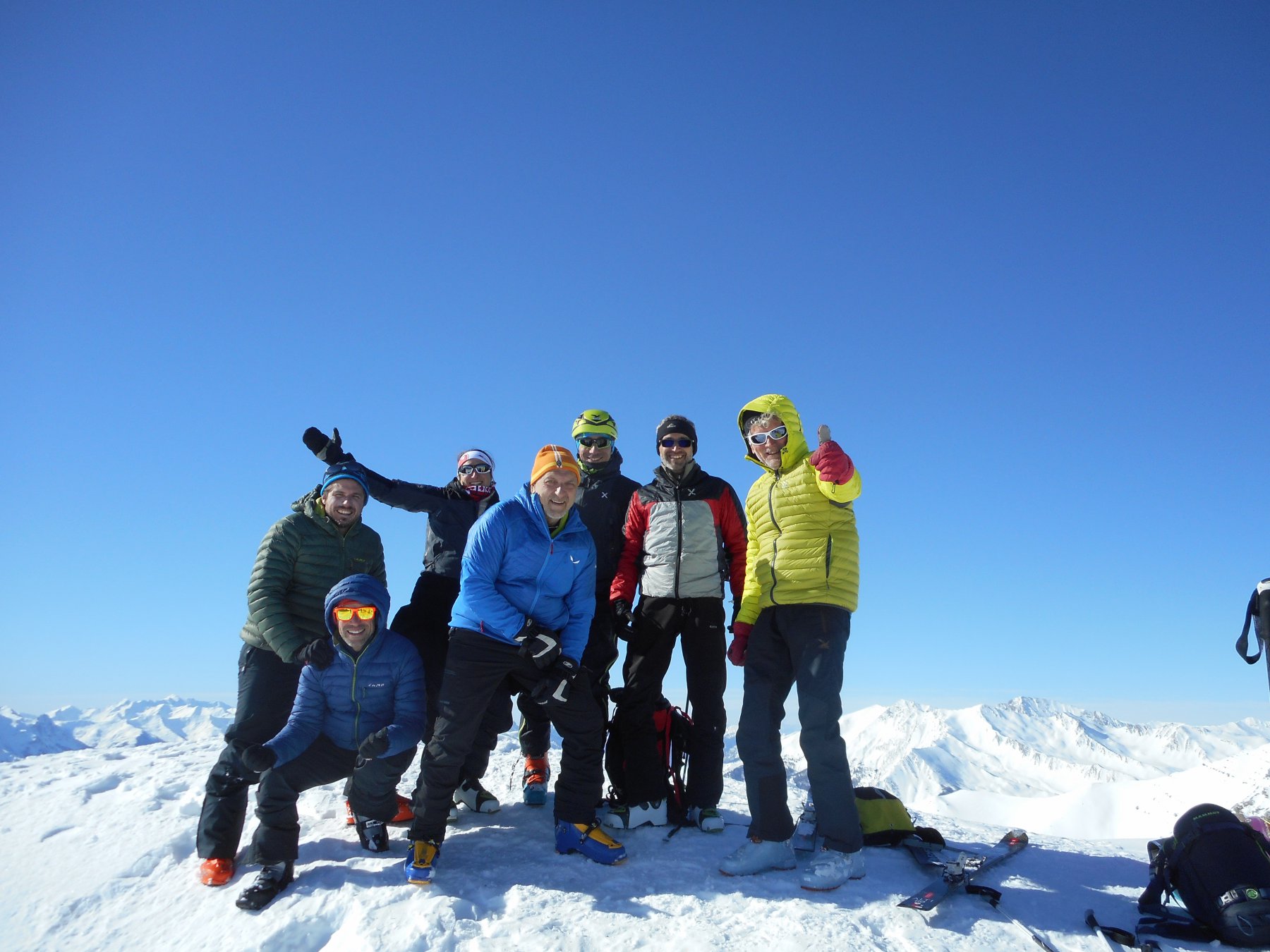 Alla partenza -12 neve fresca zuccherina recente che ha coperto le vecchie tracce su tutto il percorso, condizioni che si trovano raramente, giornata spaziale senza vento ma freddina, solo noi 14……e altri 4 traccia fatta da manuale.