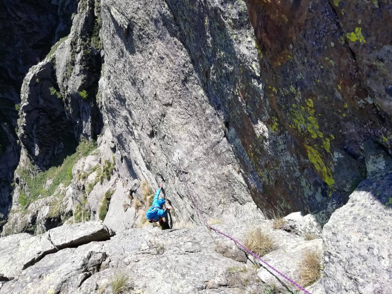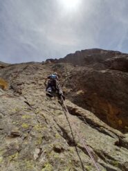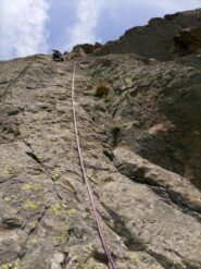L7 – si segue ora l’ultimo tiro della via Boccalatte che permette di superare il torrione finale, fino alla prima sosta di calata. Tiro di 30m. Grado 4c, sul tiro si trova uno spit-fix.
