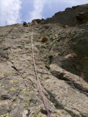 Straordinaria perla storica di questo luogo meraviglioso delle Valli di Lanzo. Ripristinata, raddrizzata e allungata la Dionisi di Sinistra, che si svolge su un serpentino saldo e bellissimo (siamo sempre in montagna, quindi tastare gli appigli è comunque sempre d’obbligo), per un arrampicata davvero divertente. Una serie di friend e qualche nut sono sufficienti. Nel secondo tiro tenere lo 0.4 BD grigio per proteggere bene in una fessurina, dopo il secondo spit, un magnifico passo..E ora via con le altre due Dionisi. Valli di Lanzo sempre più saldamente al Potere.