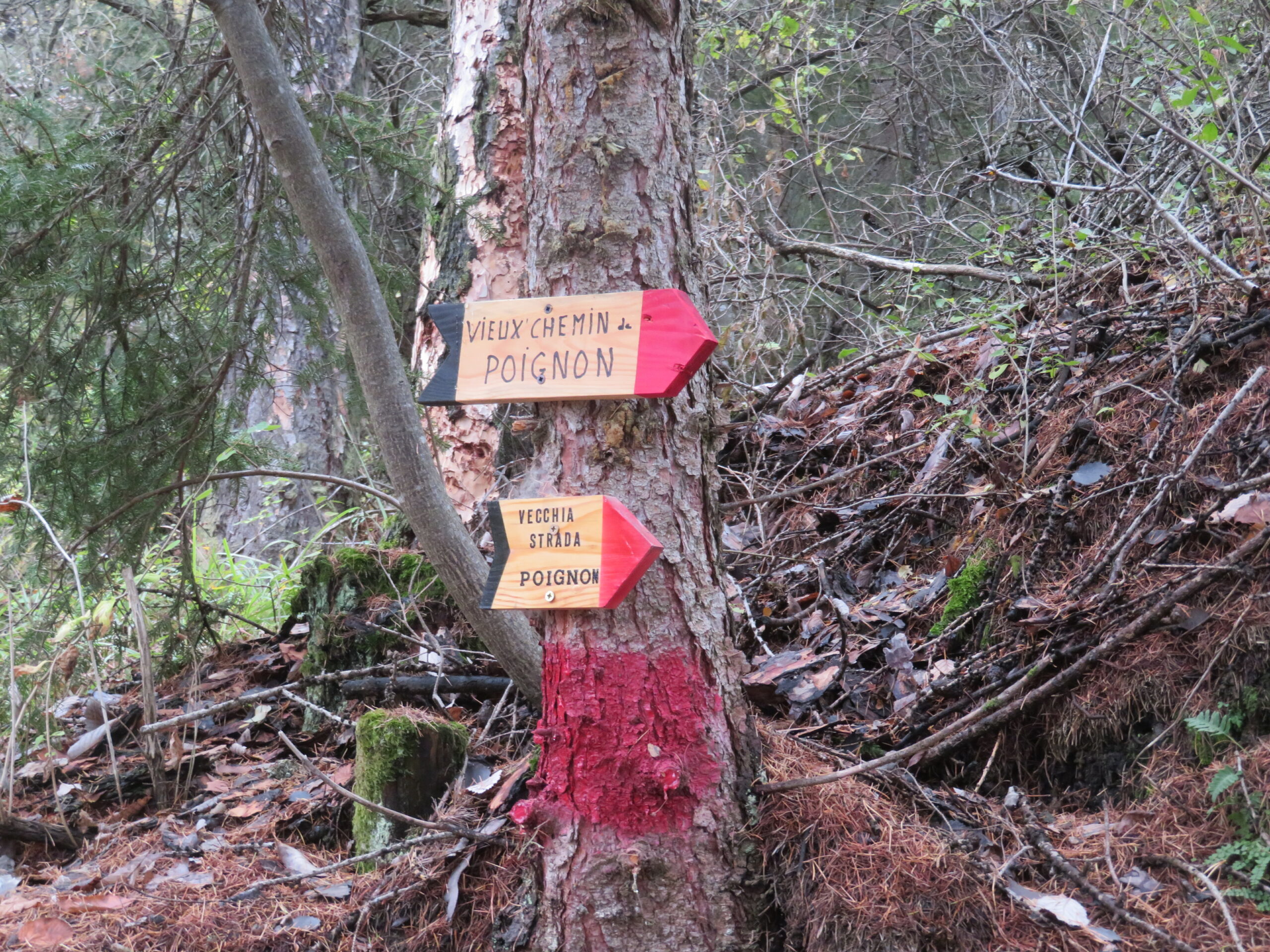 Esistono una miriade di deviazioni tutte segnalate con cartellini in legno rossi e neri con scritte direzionali (a cura presumibilmente dei Locals): per cui si può variare a piacere ed è difficile sbagliarsi. La maggior parte dei sentierini confluisce su Ploreyet 1347m , ampia radura con le c.d. “Case Vecchie”.