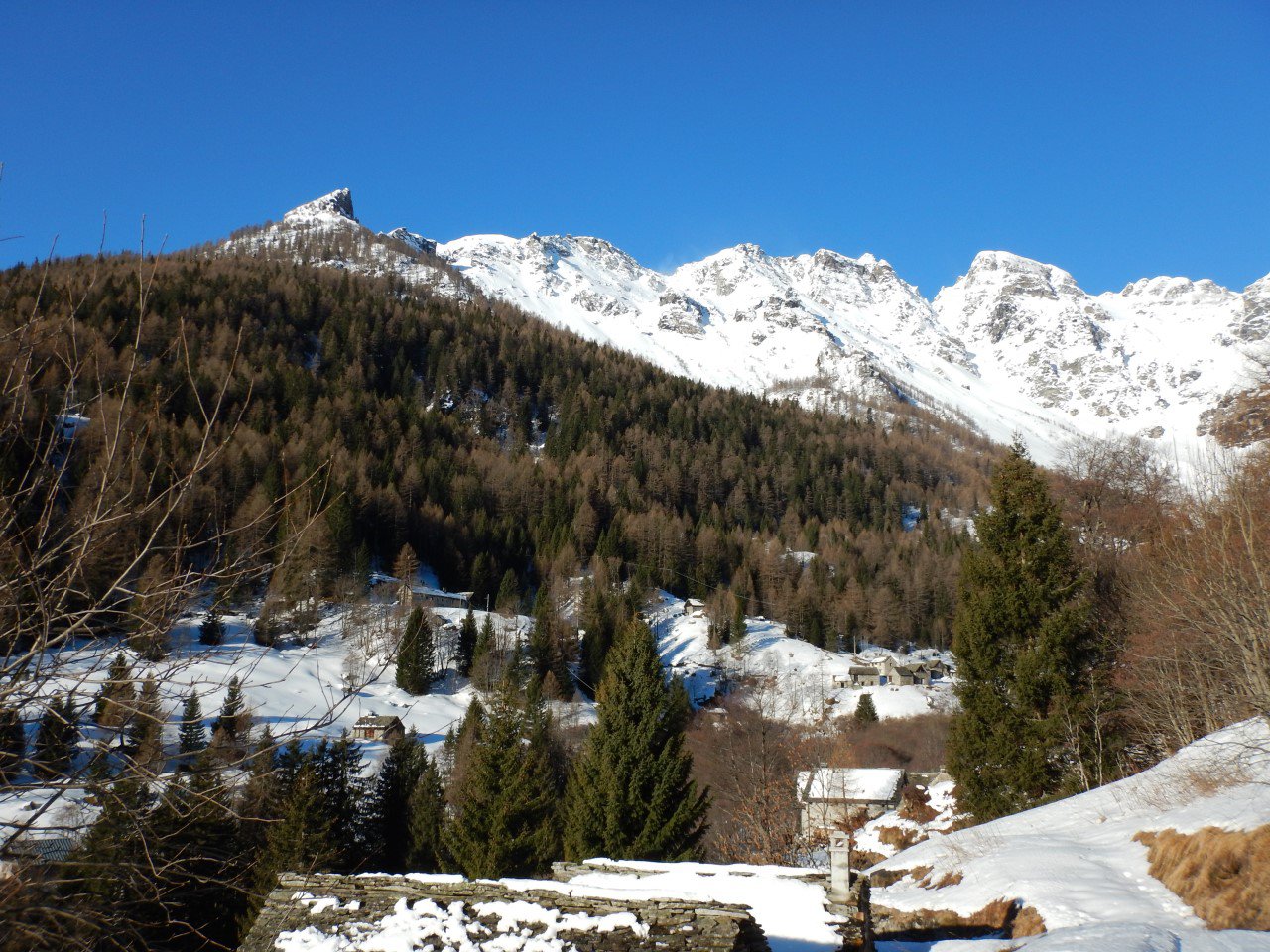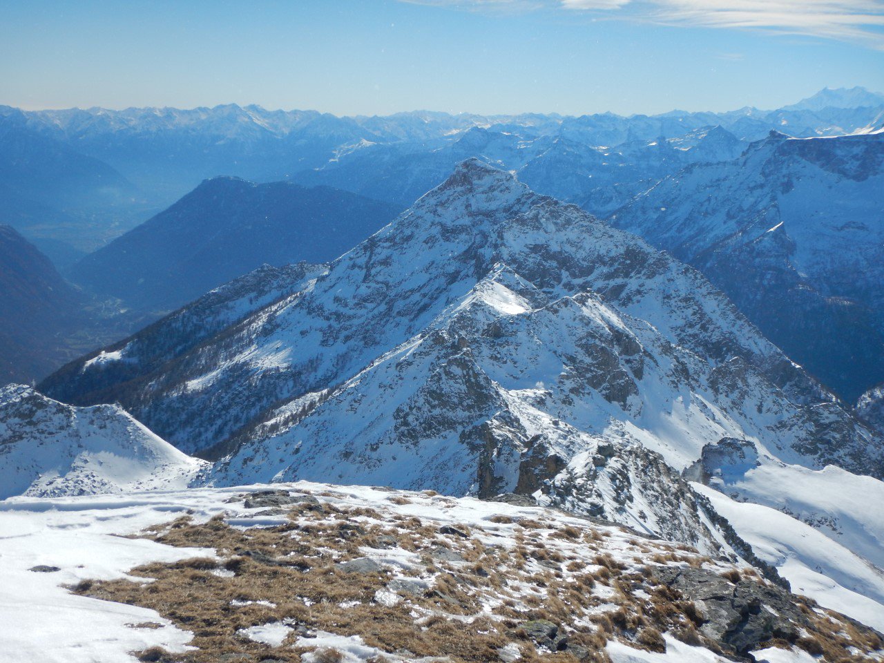 Grandioso panorama circolare sulle cime della Formazza (Arbola, Giove,Basodino), del Devero (La Rossa, Cervandone, Helsenhorn), sui quattromila del Bernese, sul trittico WFL del Sempione oltre che Andolla e Leone, sulla Valle Antigorio e su tutta la piana dell’Ossola.