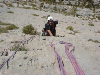 Materiale: 20 rinvii, qualche nut, qualche friends, qualche cordino. Ci sono molti spit nei tiri piú duri. Le soste son ben attrezzate per le calate