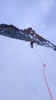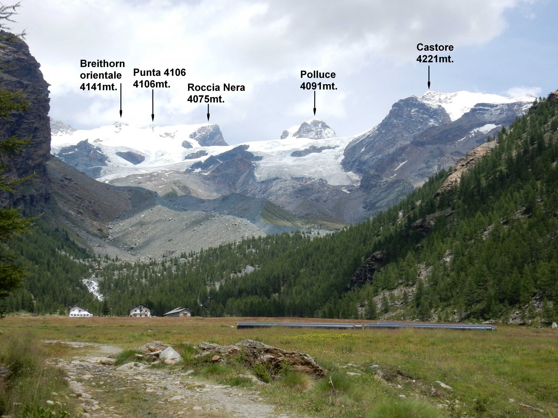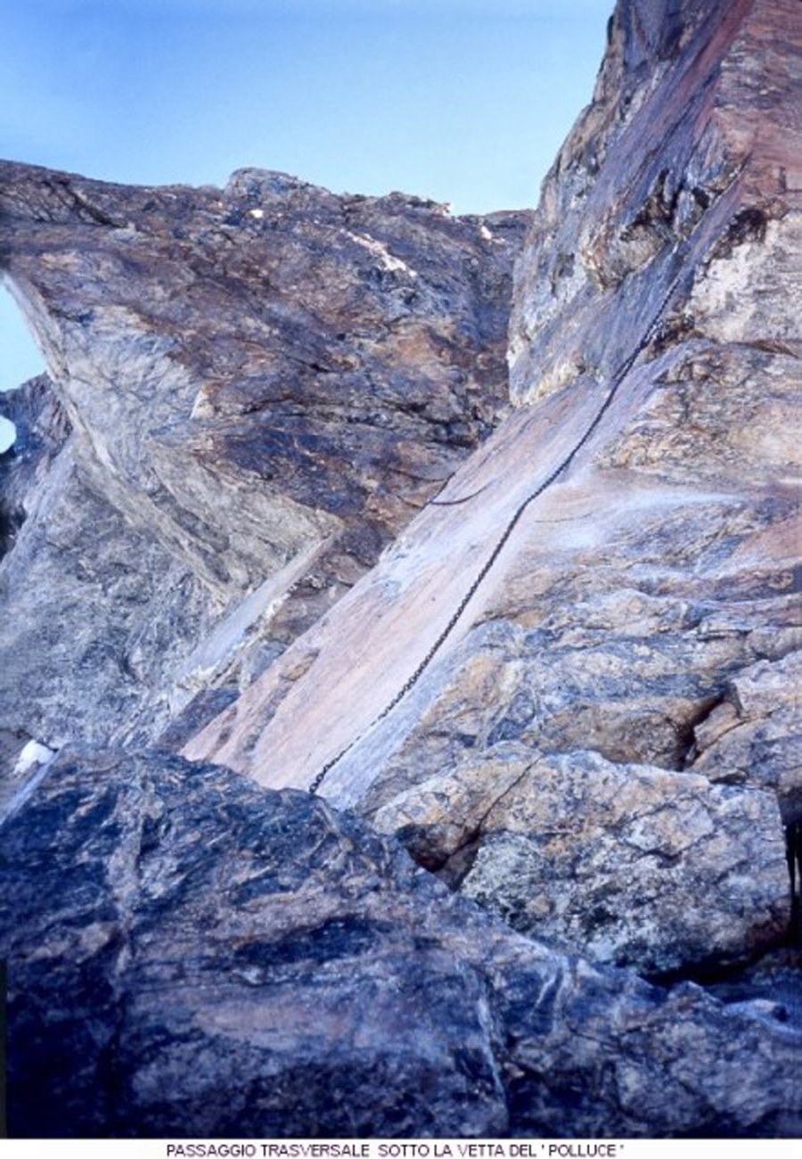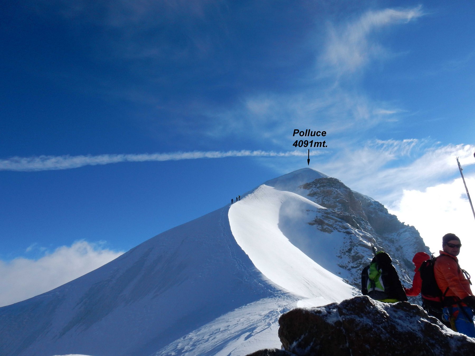 Lo si risale portandosi sotto la parete SO del Polluce poco sopra la base.