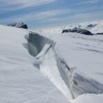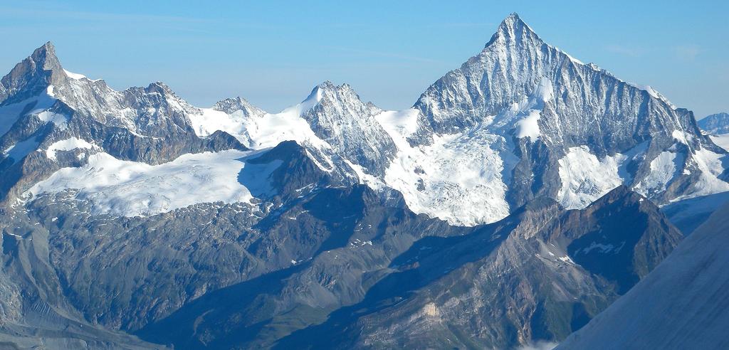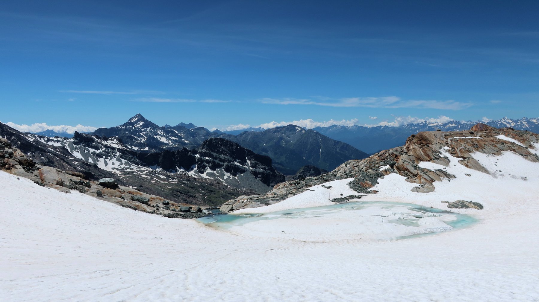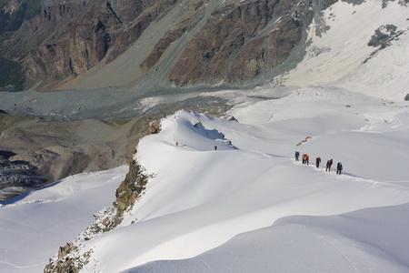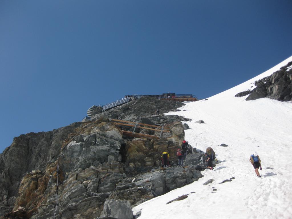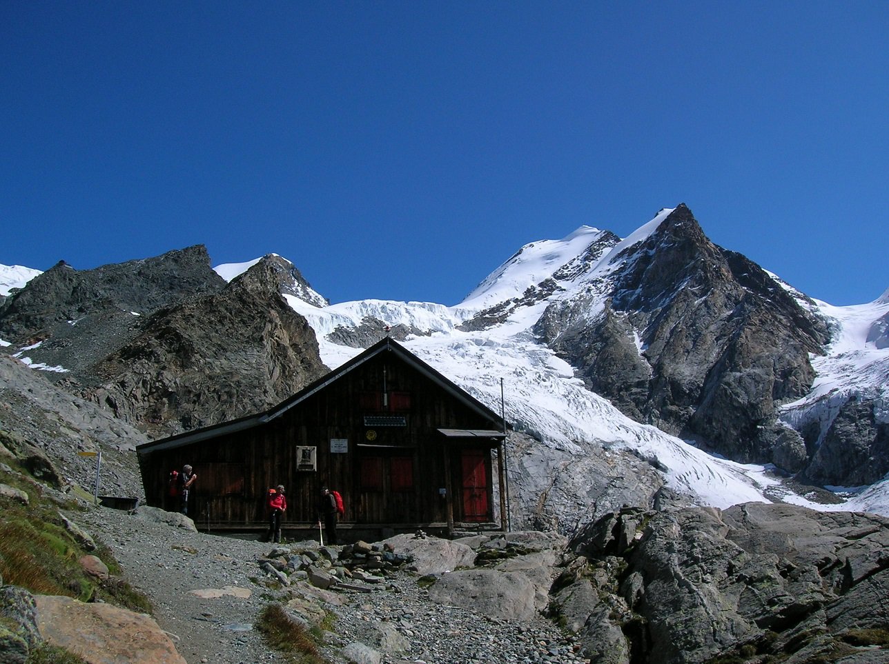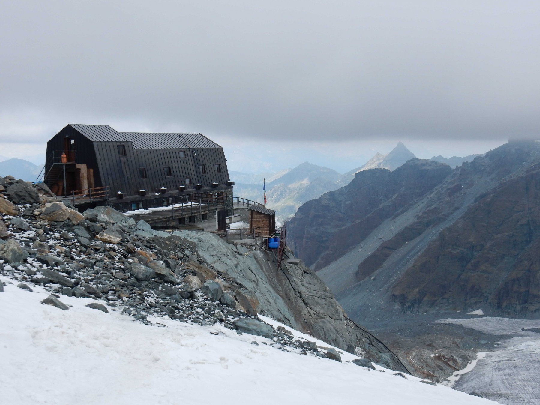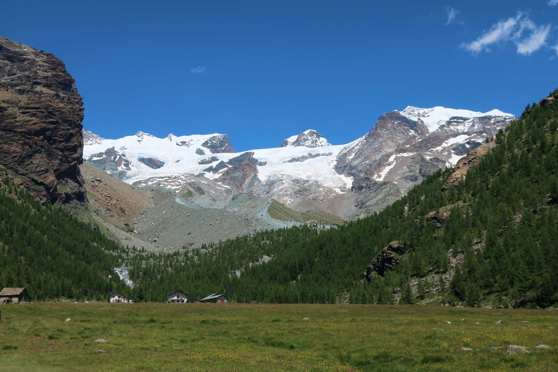 Dal rifugio Guide della Val d’Ayas si raggiunge il lungo avvallamento formato dal ghiacciaio delimitato a sinistra dalla seraccata della parte superiore del ghiacciaio di Verra.