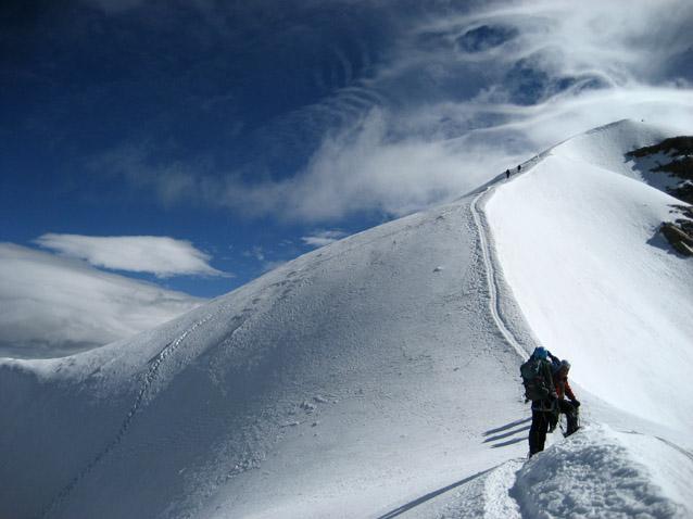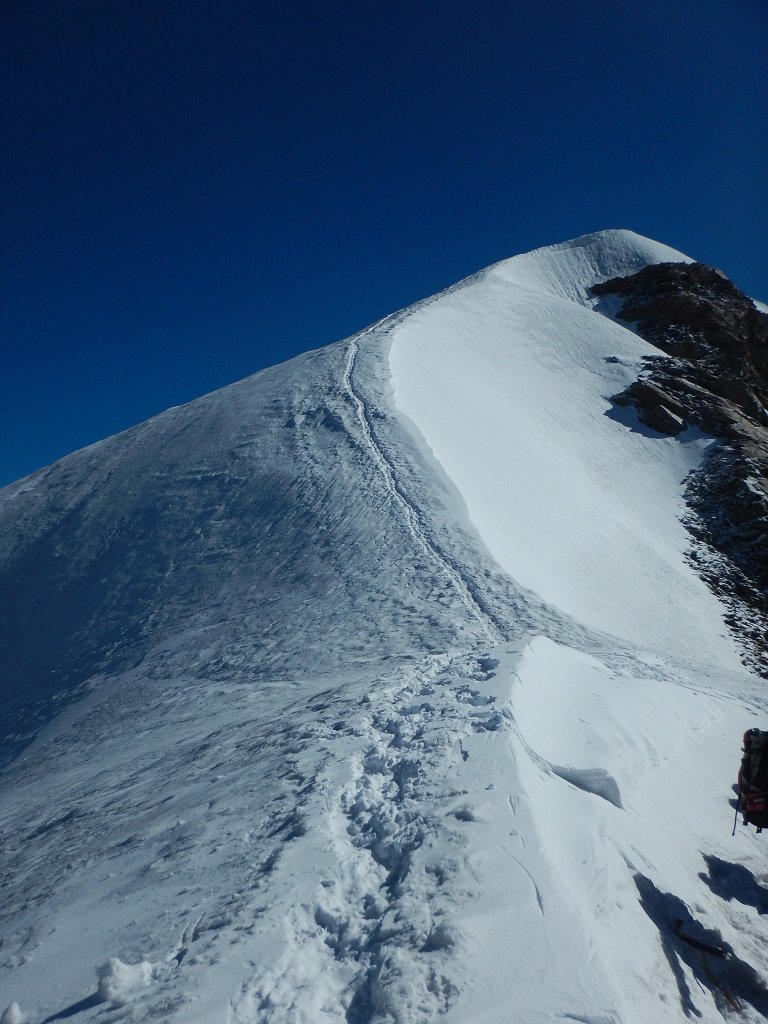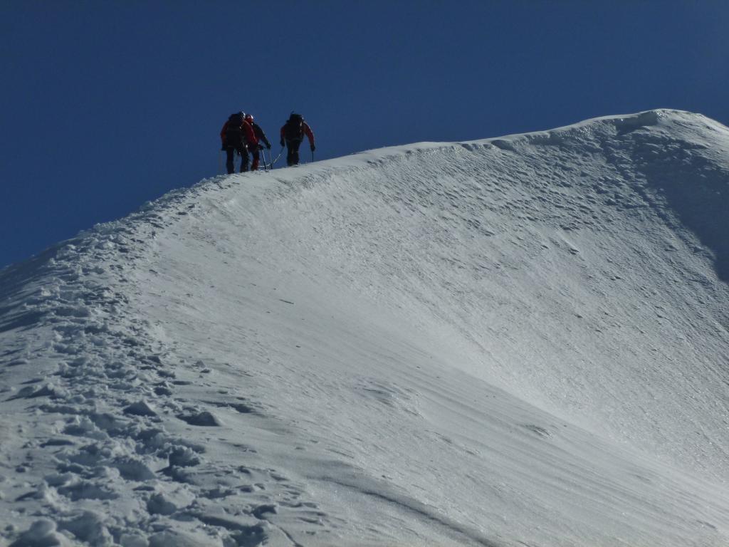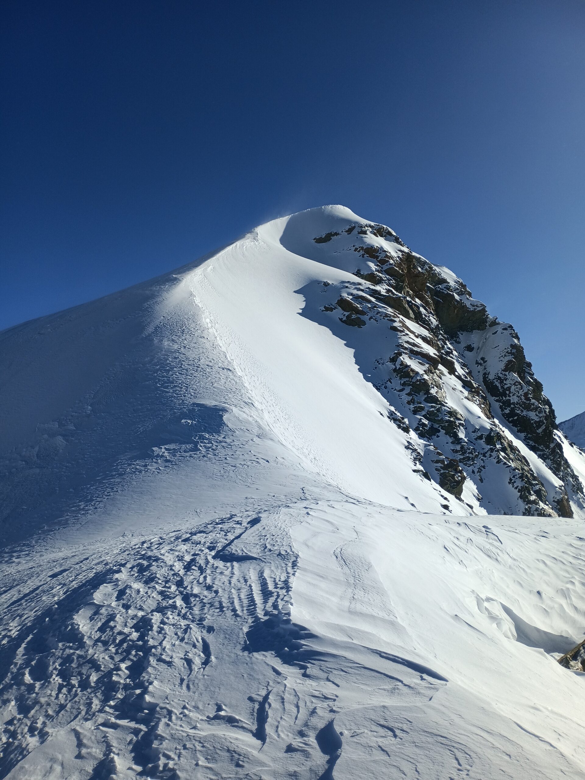 Lungo la cresta nevosa in 10 minuti si giunge in cima.