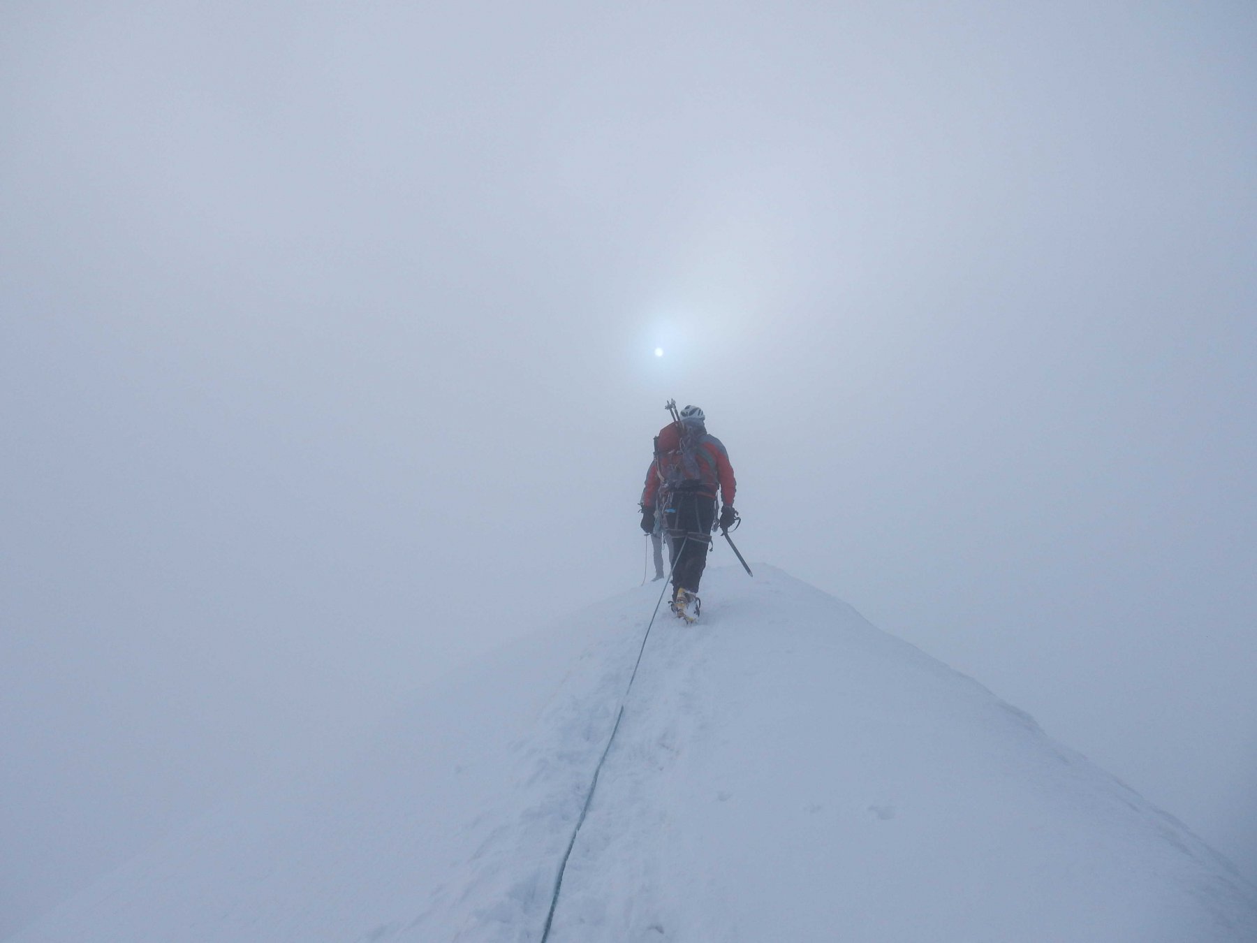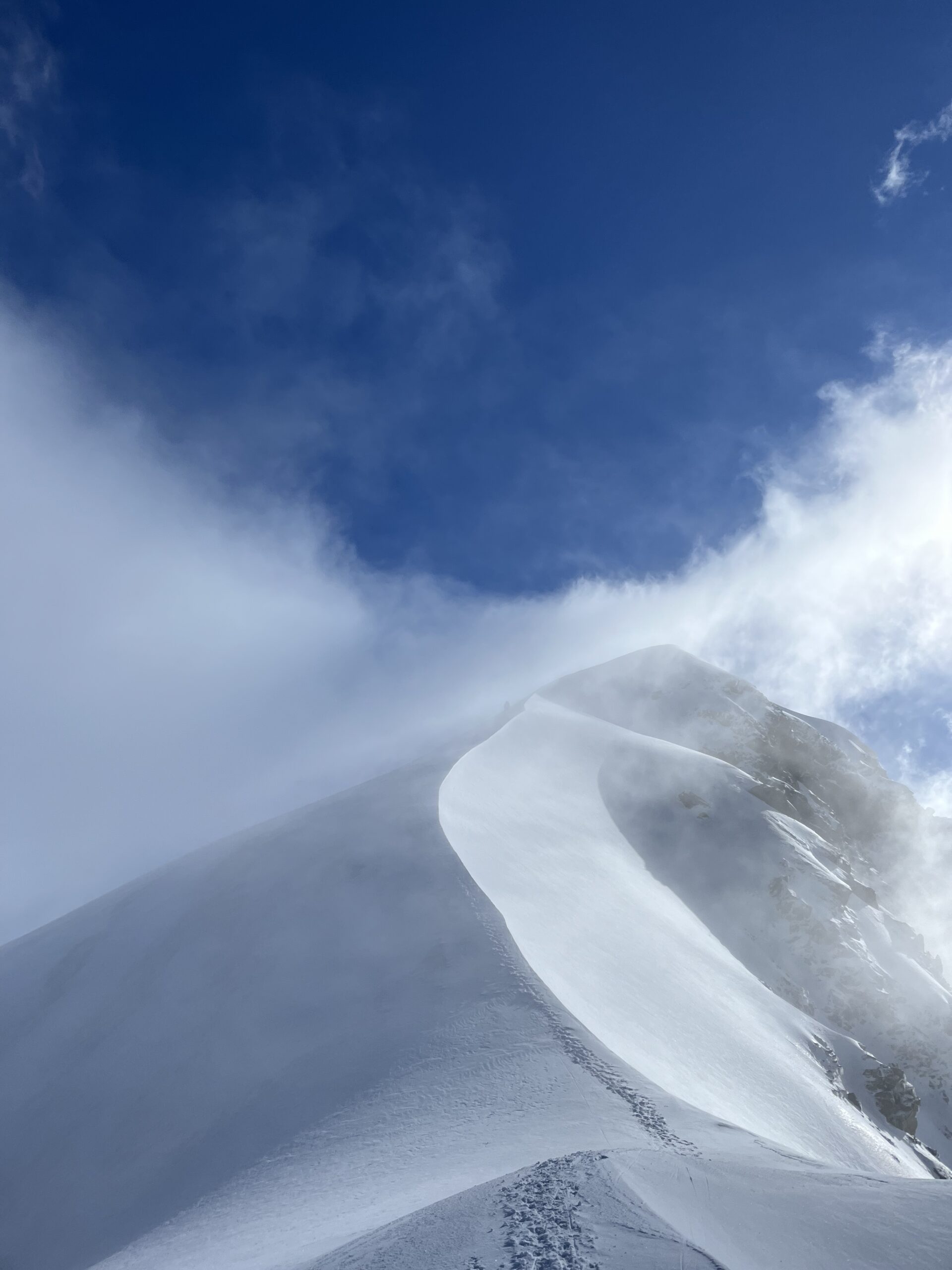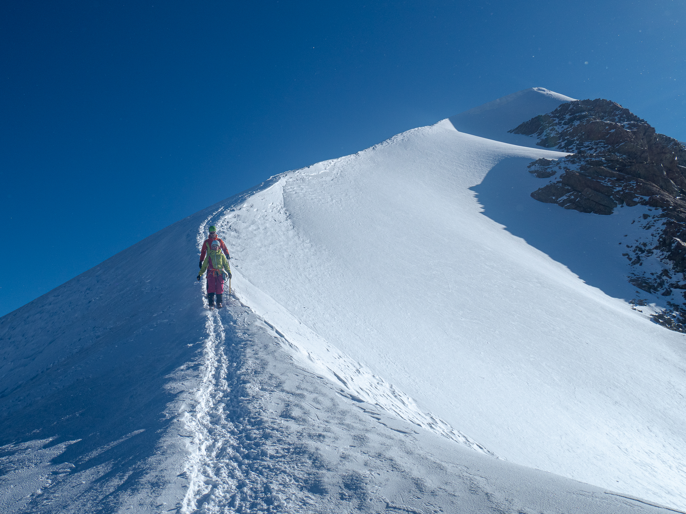 Lungo la cresta nevosa in 10 minuti si giunge in cima.