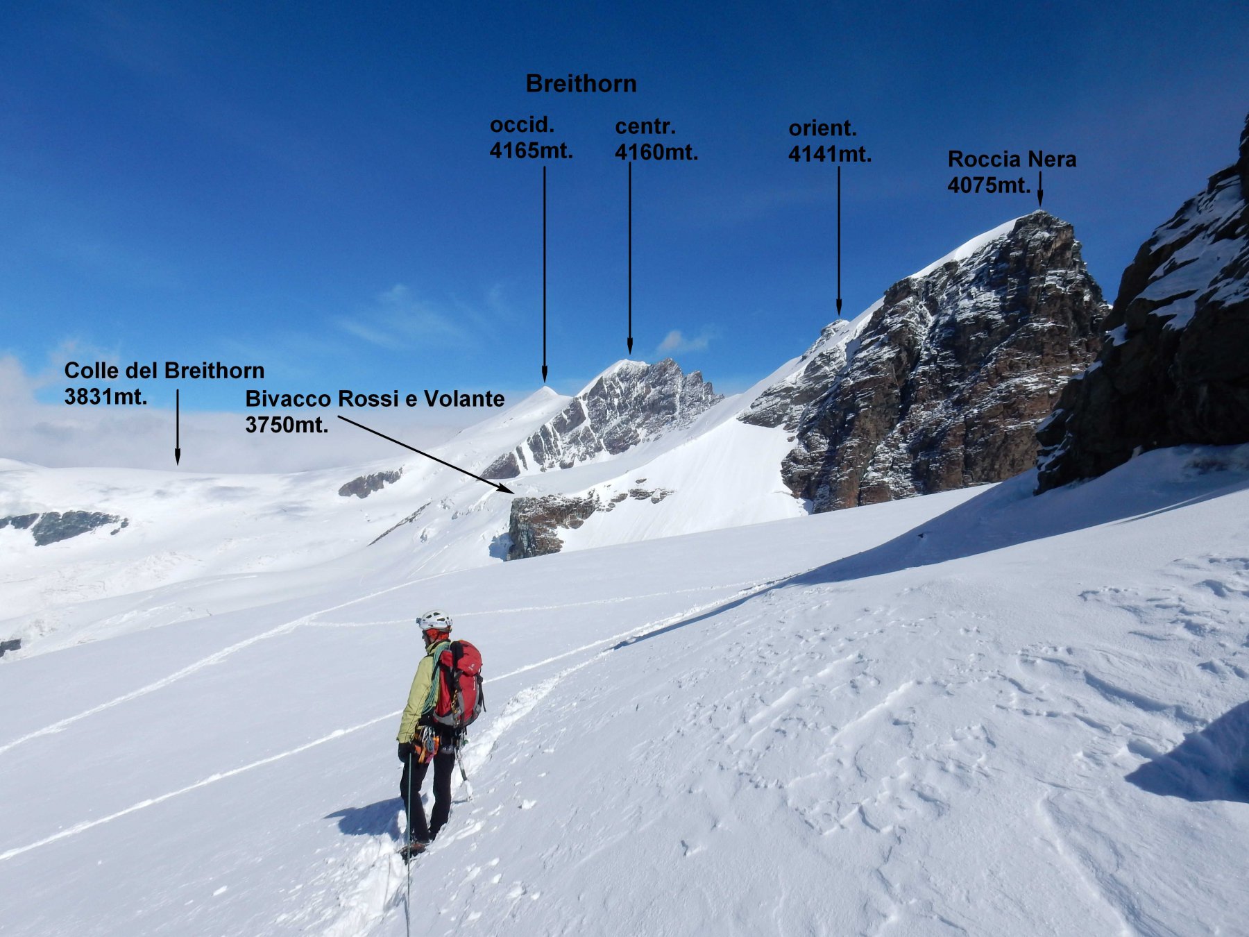 Roccia Nera, quota 4106 m o Gemello e Breithorn Orientale, traversata E-O da Saint-Jacques