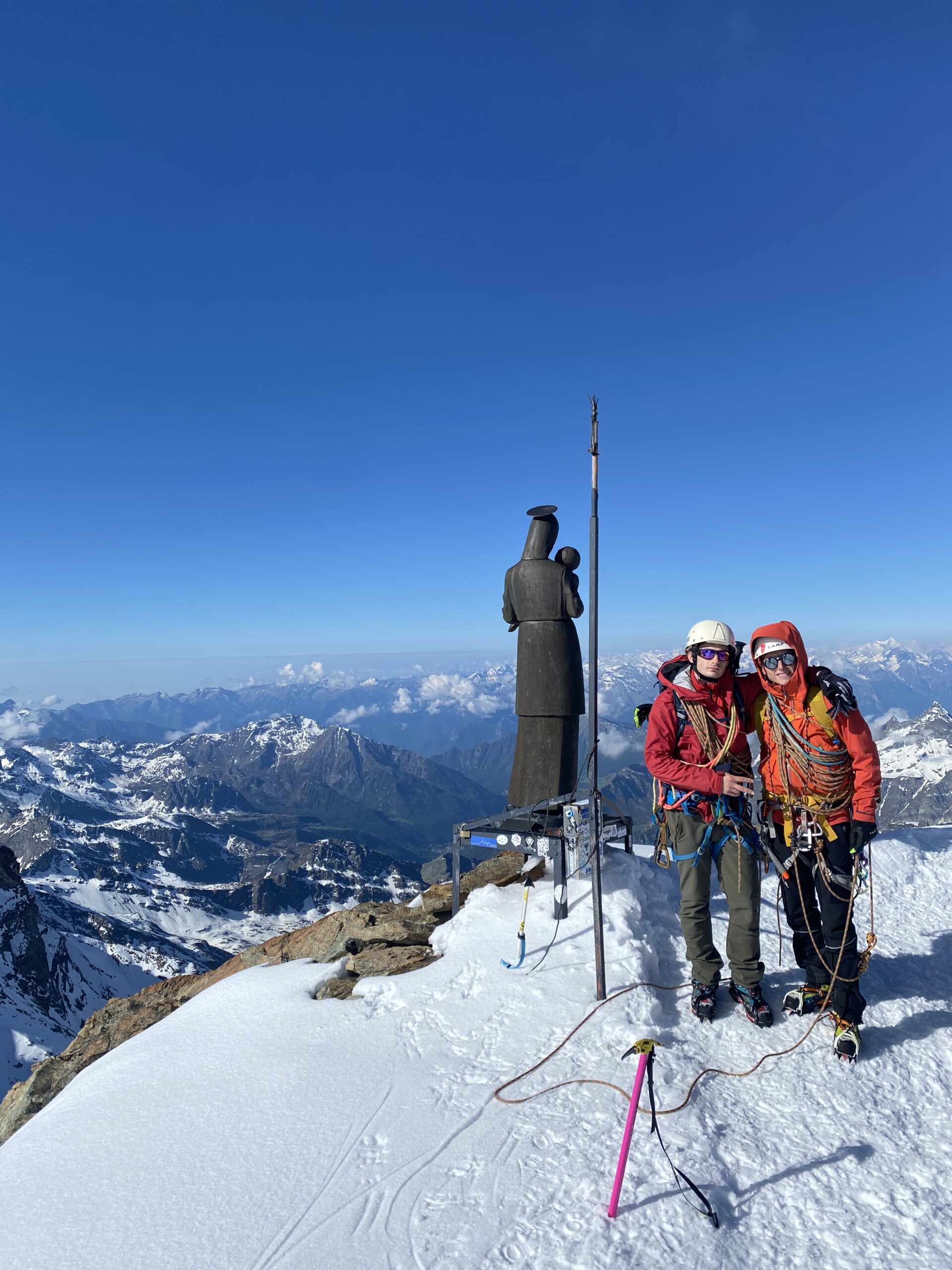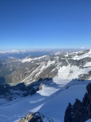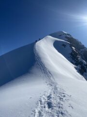 Partiti dal parcheggio di Saint Jacques e saliti fino al Mezzalama con solo qualche nevaio da superare, alla fine il rifugio questo week end aveva riaperto, i 2 ragazzi che gestiscono il rifugio sono stati stra gentili e super carini e dormire al Mezzalama è stato molto bello (ottima cena e colazione nonostante fosse stata una apertura occasionale), il giorno dopo giornata perfetta in cima in circa 4 ore in totale tranquillità dal rifugio grazie anche al fatto che nella neve non si sprofondava, in gran compagnia con Piero