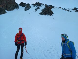 Sentiero pulito fino al Rif Mezzalama. Neve tra i due rifugi. Ottime condizioni dal Rif guide in su. Buone peste nel canalino di neve e parte rocciosa pulita.