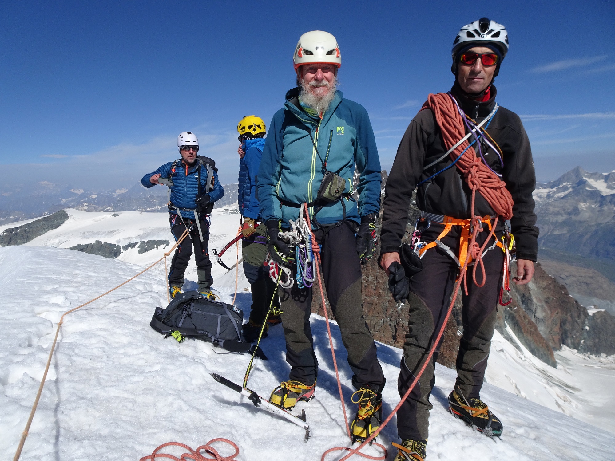 Noi siamo partiti dal Rifugio delle Guide del Cervino alle 4:30. Il panorama da Plateau Rosà è francamente un po’ desolante con tutto quel ghiaccio nero che si vede. Avevo salito il Castore a fine maggio con gli sci ed era tutto bianco. In ogni caso buon rigelo notturno e neve portante sia all’andata che al ritorno. Dal colle del Breithorn la situazione migliora. All’andata abbiamo seguito la traccia alta che costeggia i Breithorn e scesi al bivacco Rossi Violante e da lì in breve ci siamo congiunti con la traccia più bassa. Abbiamo salito il canale classico con molti punti con ghiaccio affiorante per nulla banale in quelle condizioni. Quasi tutti passavano a destra su sfasciumi per poi incontrare l’itinerario nostro. E se lo fanno le guide con i clienti un motivo ci sarà. In ogni caso al ritorno siamo scesi da lì. Le catene facilitano moltissimo la salita alla Madonnina ma che traffico fra chi scendeva e chi saliva. Cresta finale perfetta. In discesa abbiamo fatto 2 doppie per sveltire la discesa e poi giù per facili roccette fino ad arrivare a toccare la neve. Al ritorno siamo risaliti al colle del Breithorn per la traccia bassa , ma quanti crepacci si devono saltare, fortunatamente il rigelo era favorevole. Col caldo passerei sicuramente sulla traccia sopra. Che dire alcuni anni fa avevo salito il Polluce usando gli sci e mi era sembrato molto più facile, forse perché sono più sci alpinista che alpinista. Comunque mi sono divertito come sempre quando vado in montagna. In compagnia di Massimiliano socio super affidabile che si muove bene in tutti i terreni.