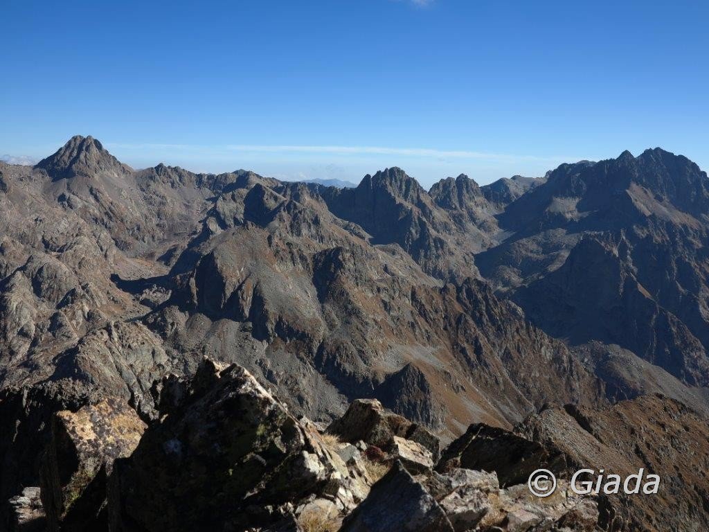 Bellissima vista su Gelas e Maledia, i numerosi laghi e i valloni di Fenestre e Gordolasque.