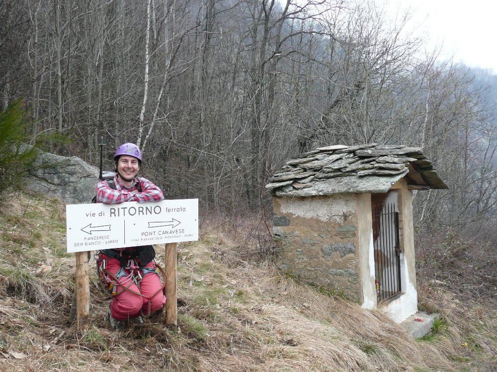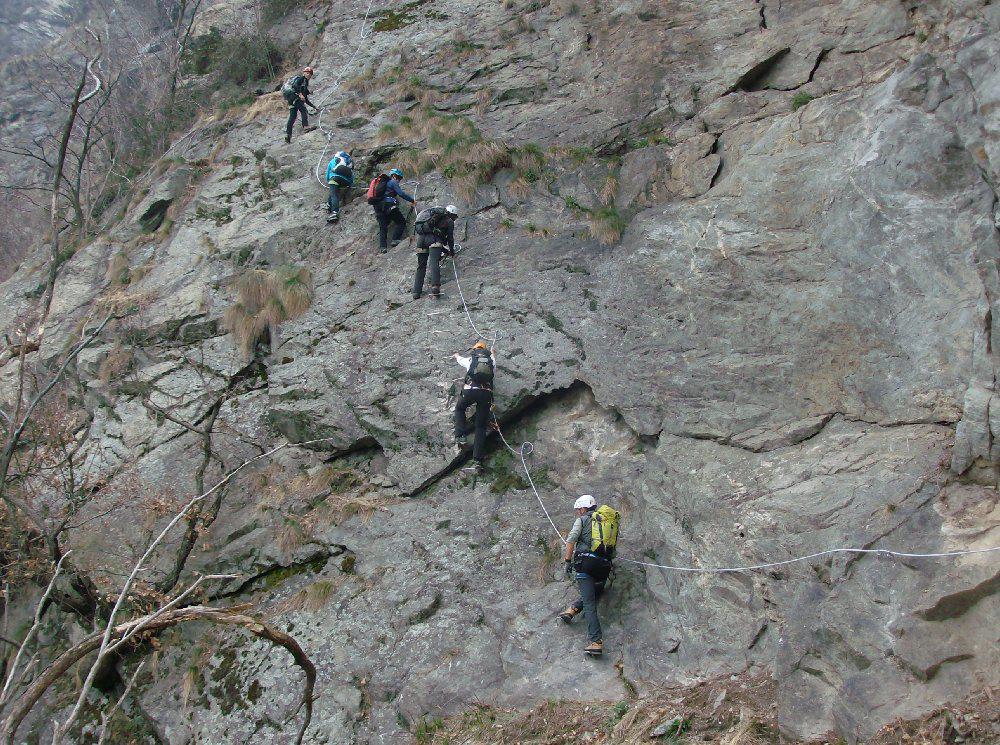 Le condizioni meteo di oggi erano un po’ a rischio pioggia ma alla fine siamo stati graziati ed abbiamo potuto usufruire di questo nuovo percorso dopo aver assistito all’inaugurazione. Si è anche parlato di ulteriori espansioni dal momento che la parete offre molte opportunità. Rocce ancora umide in alcuni brevi tratti dopo le abbondanti piogge dei giorni precedenti, ma si sale senza problemi grazie alla generosa presenza di staffe metalliche. Abbiamo parcheggiato in paese a Pont e siamo scesi verso Pianrastello per il rientro. Percorso molto interessante anche per la sua valenza panoramica sui rilievi della bassa Valle Orco anche se oggi le nubi la facevano da padrone. Giunto sul posto con Andrea C. abbiamo percorso la ferrata aggregandoci “strada facendo” ad un gruppo di locali composto in totale da 15 persone, un caro saluto e grazie a tutti per la compagnia e la merenda finale.
