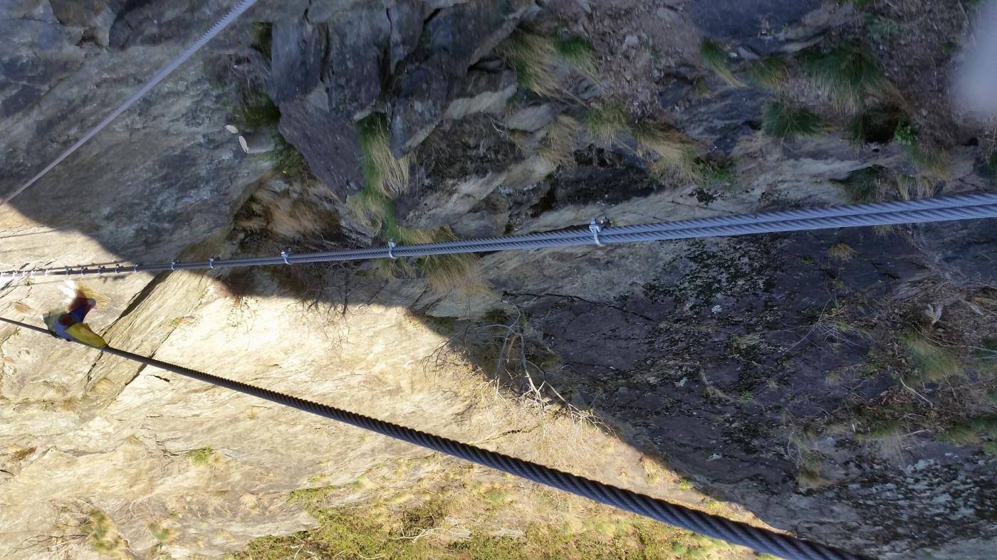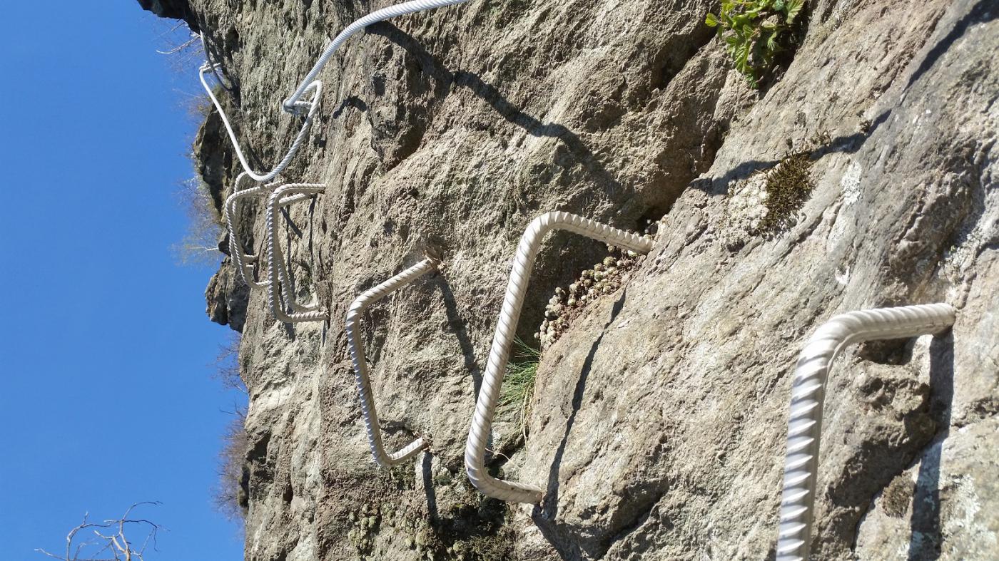 Non posso esprimere giudizi o note sulle difficoltà non essendo un ferratista poi è pure la mia prima ferrata , ma praticando Climbing non ho trovato difficoltà!! Salita in meno di un ora e senza proteggere i passaggi.Fate voi.