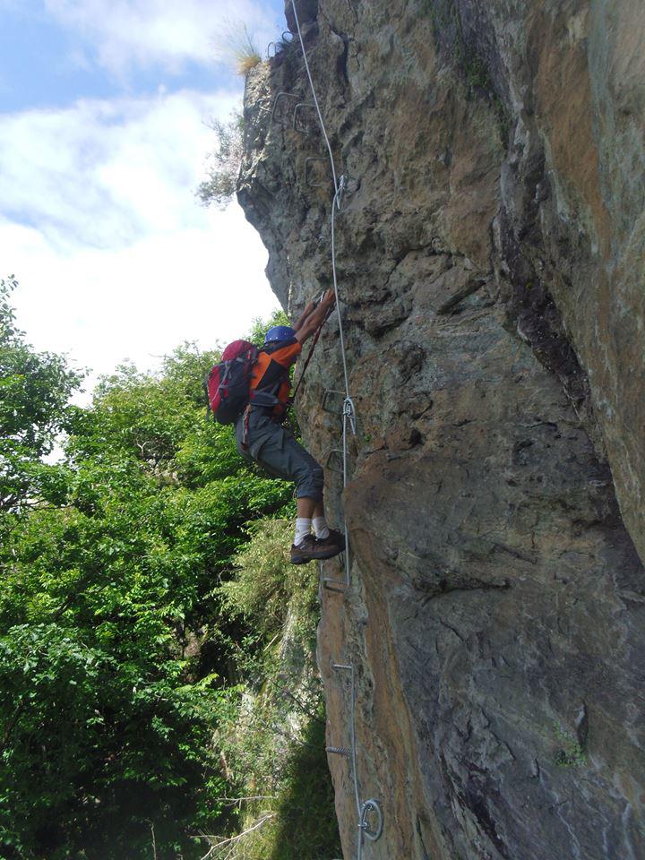 A meta’ della 2′ parte aiutata in un passaggio da un cordino messo dal socio.