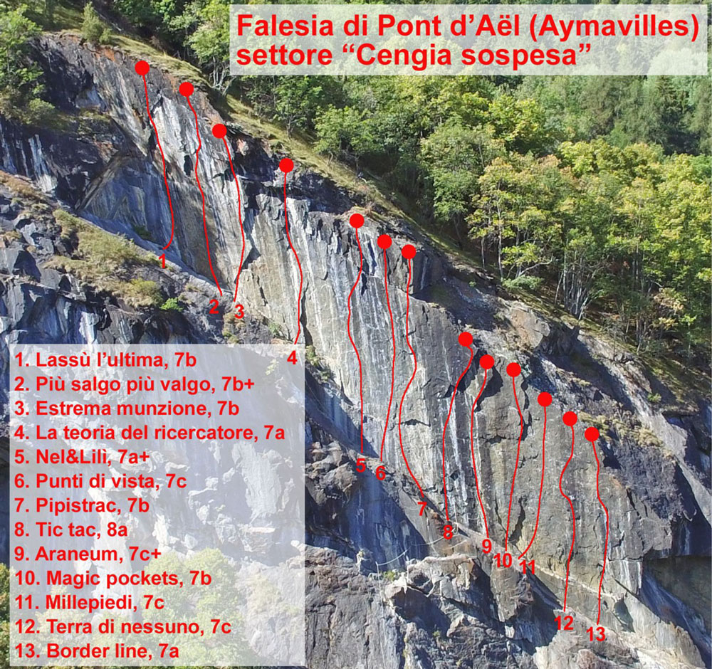 Si ricorda che l’utilizzo della falesia è sotto la completa responsabilità dell’utilizzatore, il quale deve essere in grado di gestire il rischio e di valutare il materiale a cui affida la propria vita. Per qualsiasi segnalazione di pericolosità, l’invito è quello di condividere l’informazione.