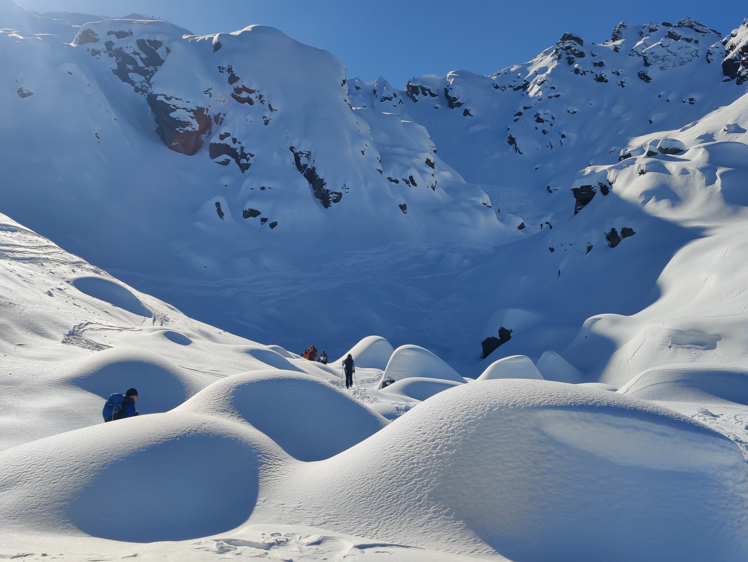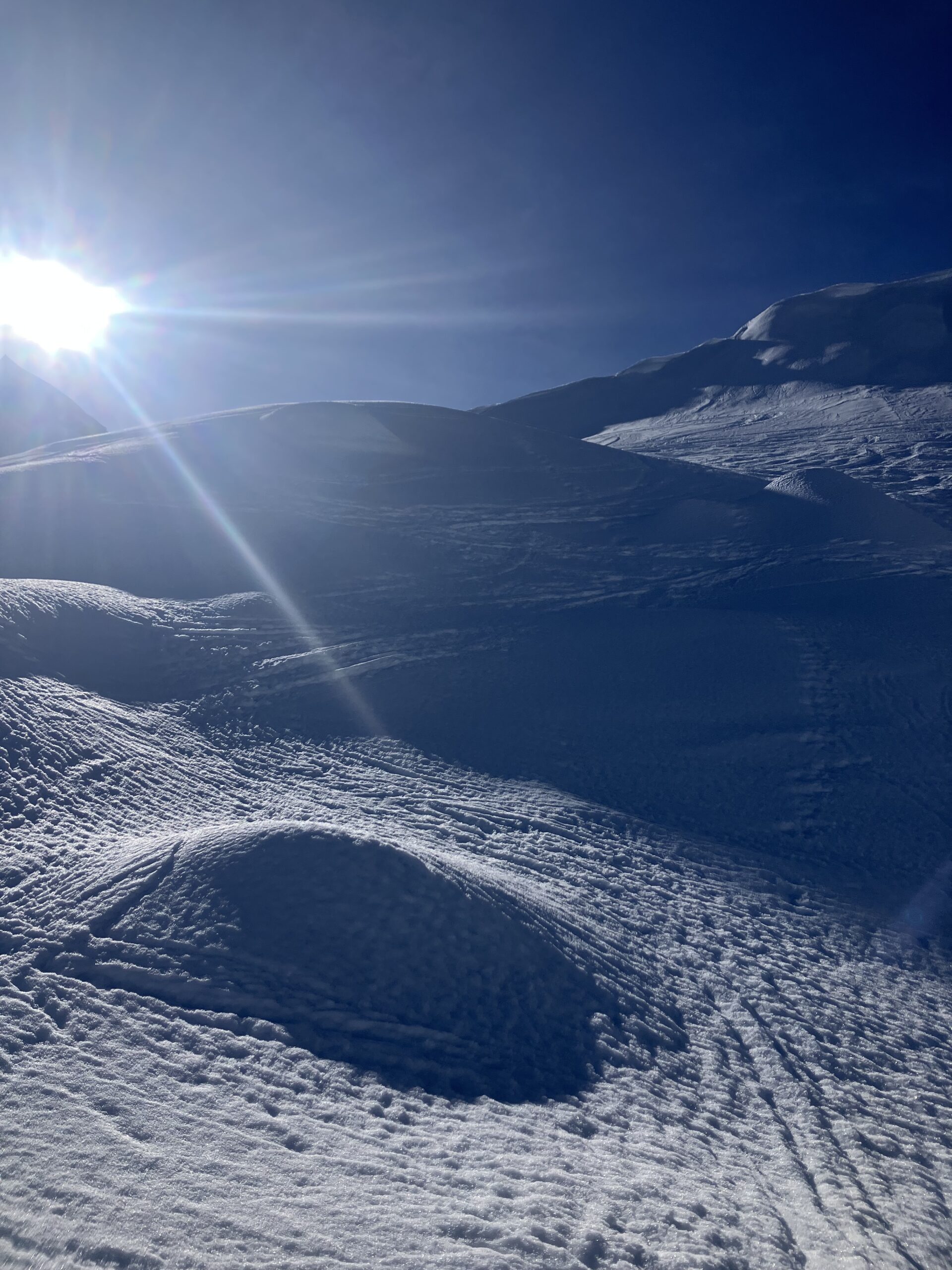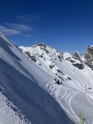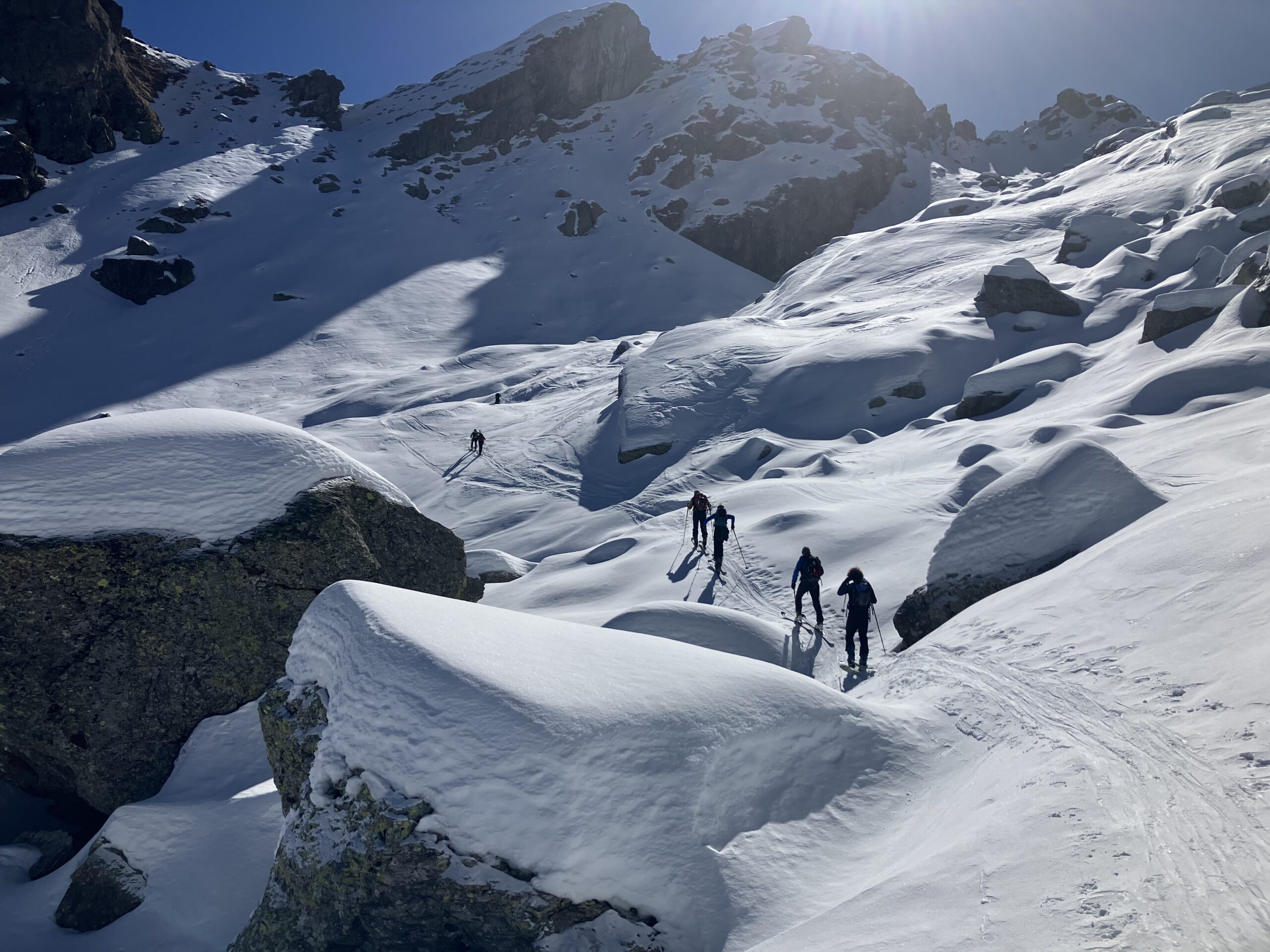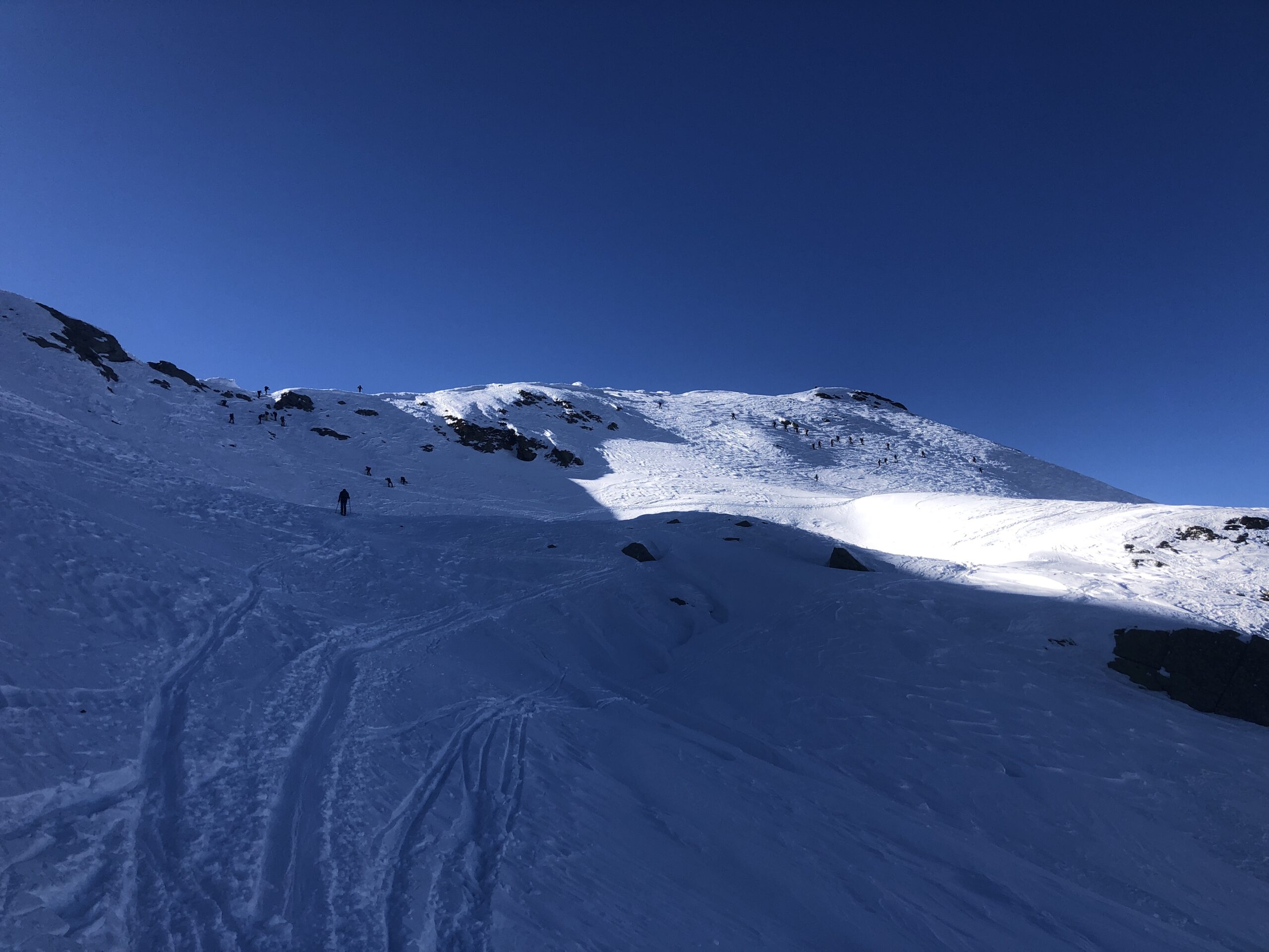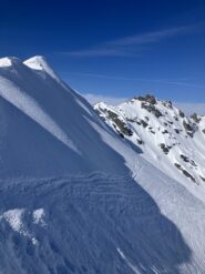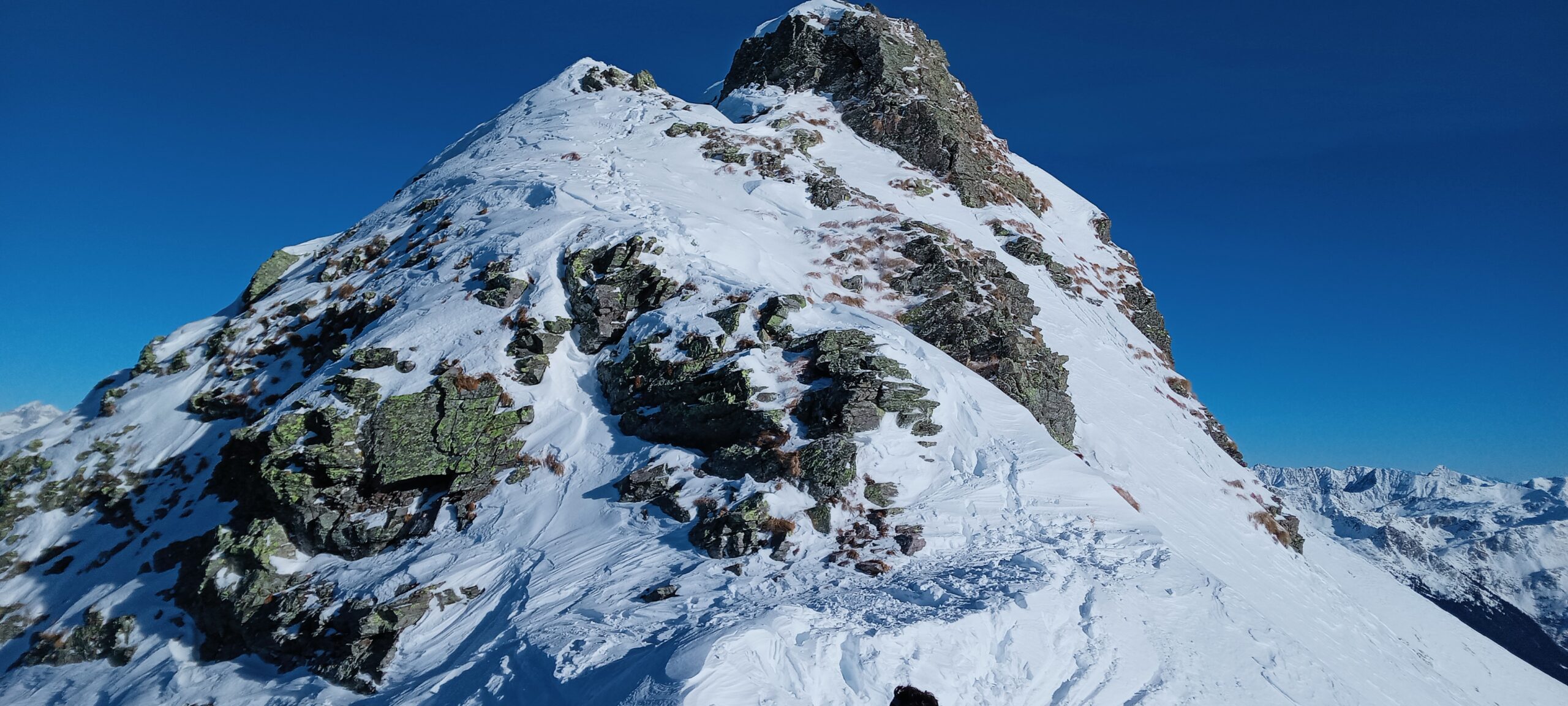 Quando inizia a vedersi la diga del lago piegare sulla destra per poi tenere il centro del vallone per risalire per alcuni dossi prima di giungere al tratto terminale dell’itinerario. Raggiungere a piedi la vetta per la facile cresta.