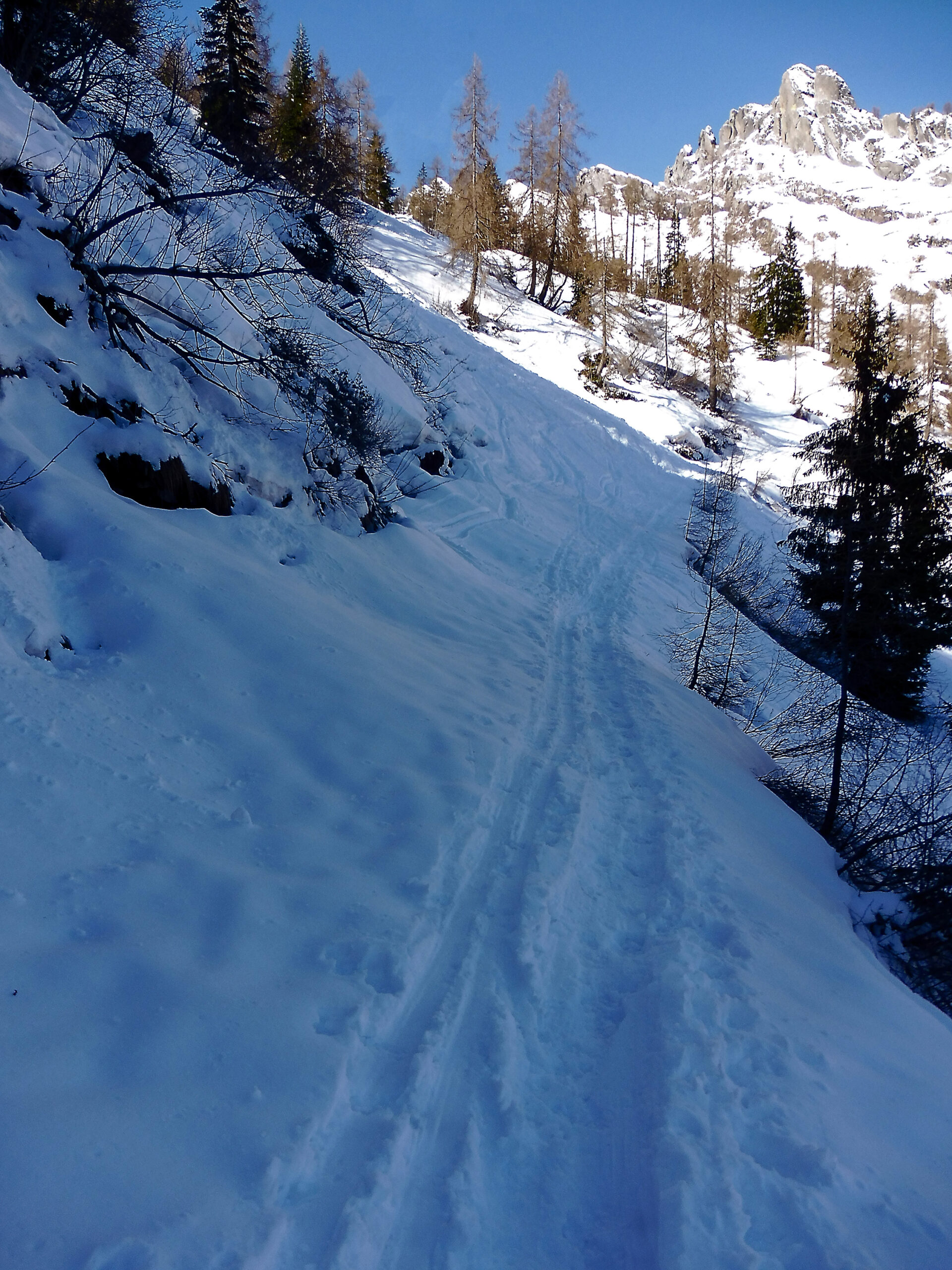Appena dopo il ponte prima della stazione di sci seguire la mulattiera per il Lago Pescegallo.