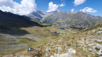 Gita molto panoramica, a parte il catino finale della valle dello Zwischbergen con l’Andolla, si vede il gruppo della Weissmies, il Leone e arrivati al passo la vista arriva fino alla Val Vigezzo