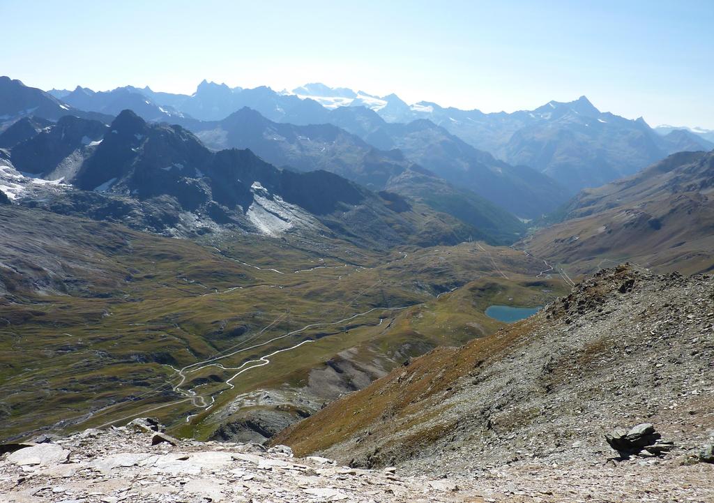 Si scende dalla cima sulla stessa cresta di salita e passando attraverso il Col Fenis si ridiscende a valle con il sentiero segnavia 7c, si costeggia il bel lago Pontonnet di Champorcher e poi con una serie di ripide svolte il sentiero si ricongiunge allo Chemin du Roi con cui si ritorna in breve tempo alla macchina .