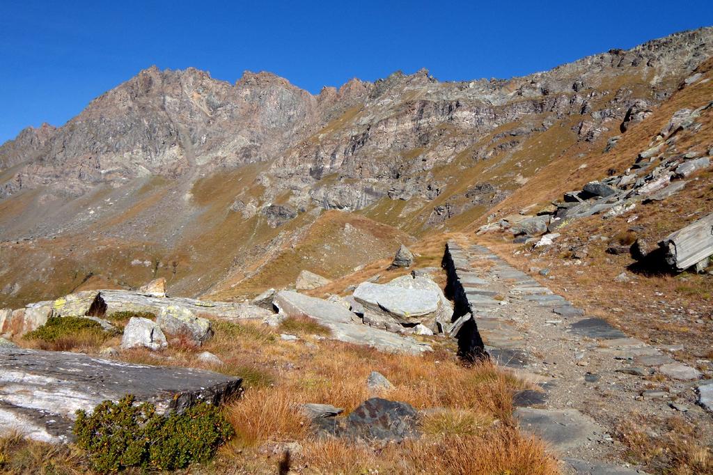 Dal lago Miserin ci si volge a ovest e si prende il sentiero dell’alta via n.2 che con un lungo tratto a mezzacosta con alcuni saliscendi e un’ultimo strappo ripido porta alla Fenètre de Champorcher ( 2826 m.) da cui si ha un bel colpo d’occhio sui sottostanti valloni dell’Urtier e di Dondena.