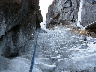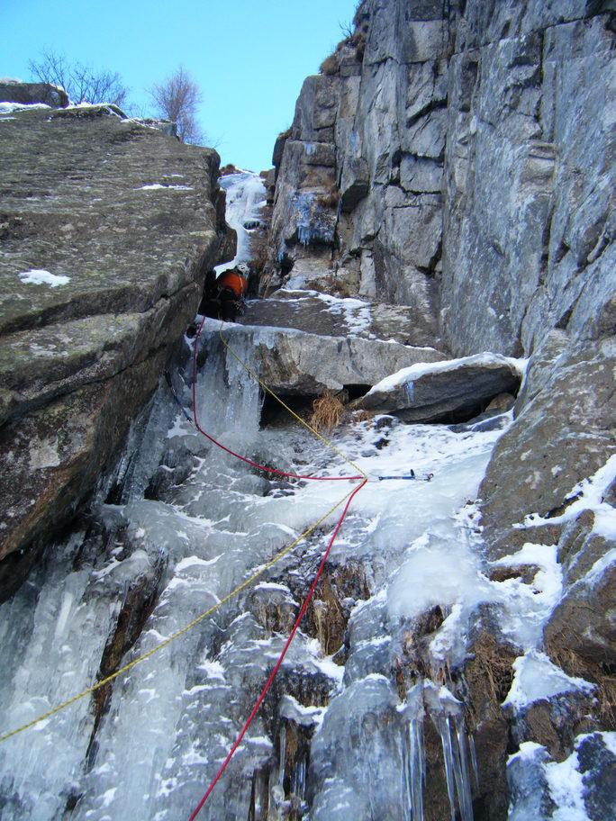 - 1) goulotte con breve tratto verticale SRsin. (spesso sguarnita di ghiaccio: utile allora una serie di stopper)