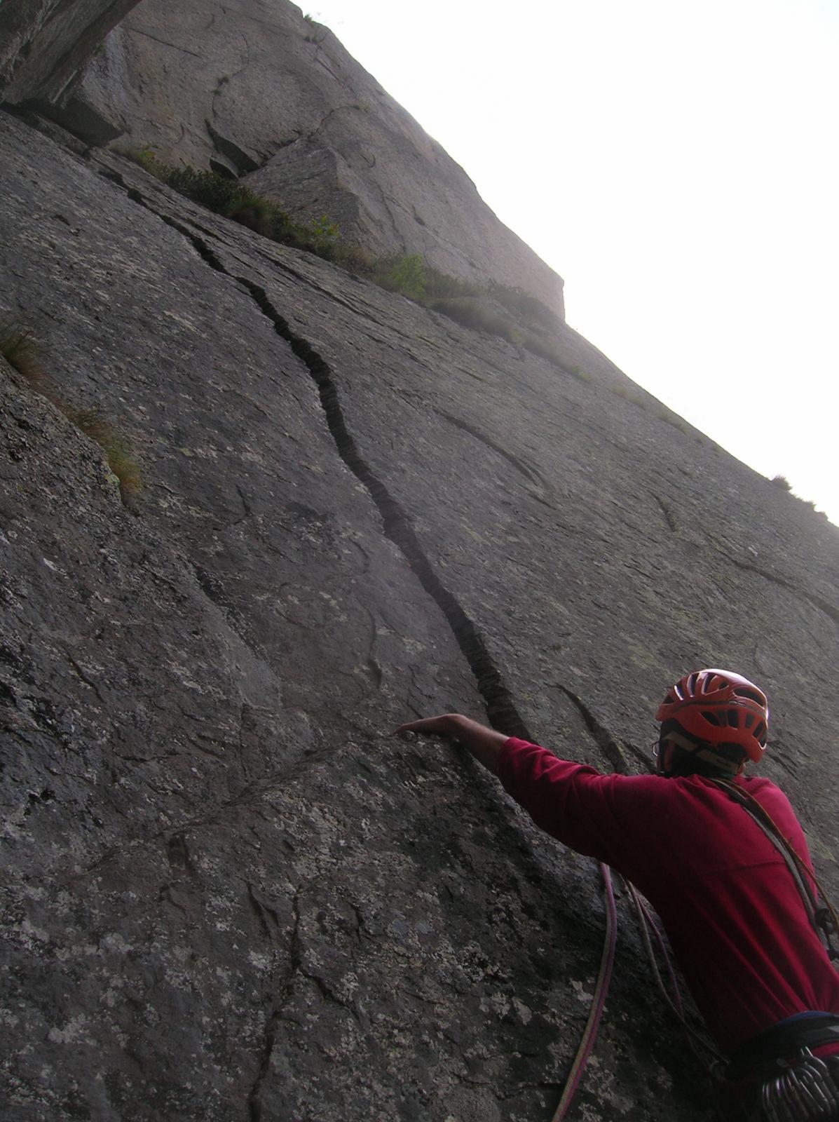Nel complesso discreta, con qualche bel tiro. Fatta una variante al primo tiro, che la rende un pò più continua. Pulita la variante del secondo tiro. In posto tutte le soste, qualcuna a spit! Assurdo l’ultimo tiro, che Grassi dava in libera sul 6b, è durissimo! Fuori di ogni logica, superato in artficiale. Il resto tutto scalabile, tranne un passo nel secondo tiro.
