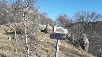 Partito con l’intenzione di fare solo un po di ginnastica arrampicatoria a Valtorrese dove non ero mai stato sinora, mi ritrovo invece a ripercorrere il sentiero scivoloso che meta’ basta, su al colle della Portia, che poi alla fine e’ diventato il giro qui descritto col prosieguo fino al colle Lunella etc etc. Il perche’ di questo cambiamento di programma e’ presto spiegato. Quando lasciato l’auto a Ciaine lato la chiesetta di San Antonio, giunto sul sito d’arrampicata, le creste in oggetto erano dato l’orientamento sfavorevole, ancora in ombra, che faccio rimango li ad aspettare che vadano al sole? Dovro’ pur inventarmi qualcosa per ingannare l’attesa. E va da se che dietro a questa idea viene ben presto a celarsi una sorpresa.