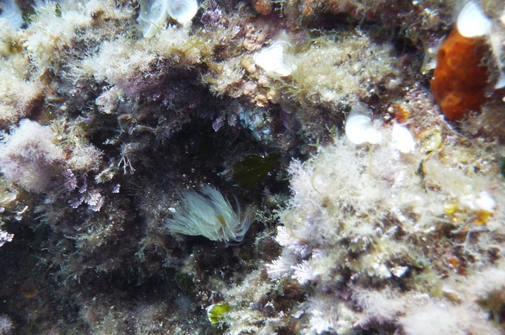 A partire dai -16 metri, fino a circa – 35, essa è colonizzata in ogni centimetro quadrato, le eunicelle cavolini e le margherite di mare (Parazoanthus axinellae) lasciano il posto alle colonie di Paramuricea clavata e ai madreporari solitari mano a mano che si scende in profondità, il corallo rosso è presente in ogni fessura, accompagnato da aragoste, anguilliformi e musdee, anche spugne, briozoi, nudibranchi e policheti contribuiscono a decorare la scena.