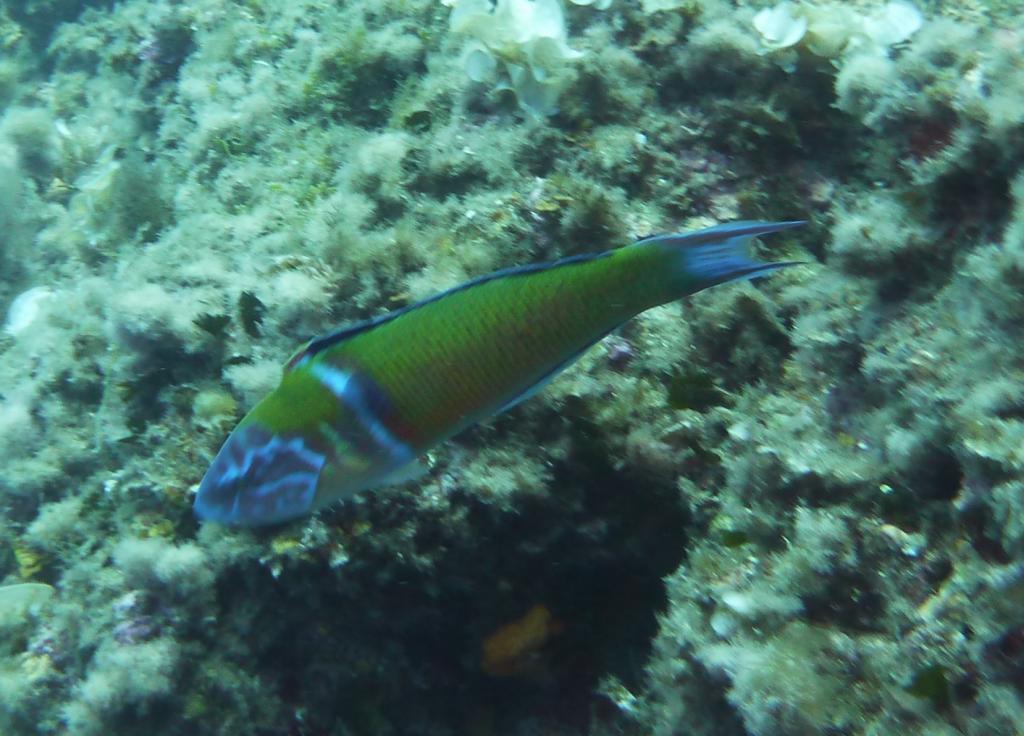 Ai piedi della parete in prossimità della punta, grossi massi sparsi esposti alle correnti si ergono dal fondale detritico, che qui supera rapidamente i 40 metri di profondità, creano un habitat ideale per ogni forma di vita che qui trova riparo e nutrimento in abbondanza. Sorvolando questi scogli variopinti a fine estate non è raro imbattersi in gruppi di ricciole (Seriola dumerili), pesci luna (mola mola), piccoli tonni, barracuda mediterraneo (Sphyraena sphyraena) ed altre diverse specie di pesci di passo.