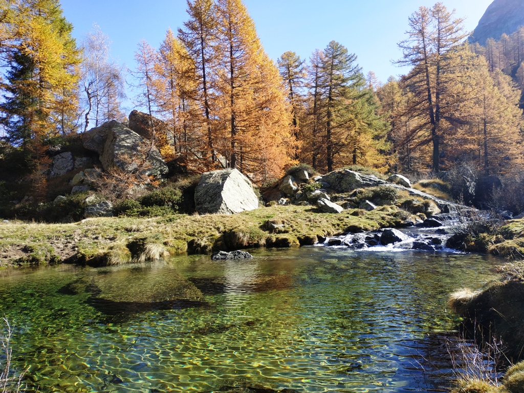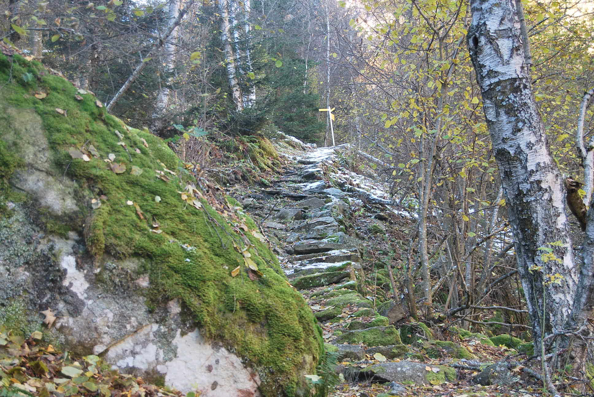 Discesa per l’itinerario di salita (si può agevolmente anche continuare seguendo l’Alta Via scendendo al Santuario di Retempio e da qui a Pont Boset).