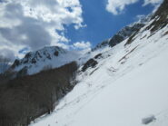 il giorno successivo salita al m prado(2050m) per la conca della bargetana lungo il canale centrale nord pendenza 35° spesso vetrato utili piccozza e ramponi