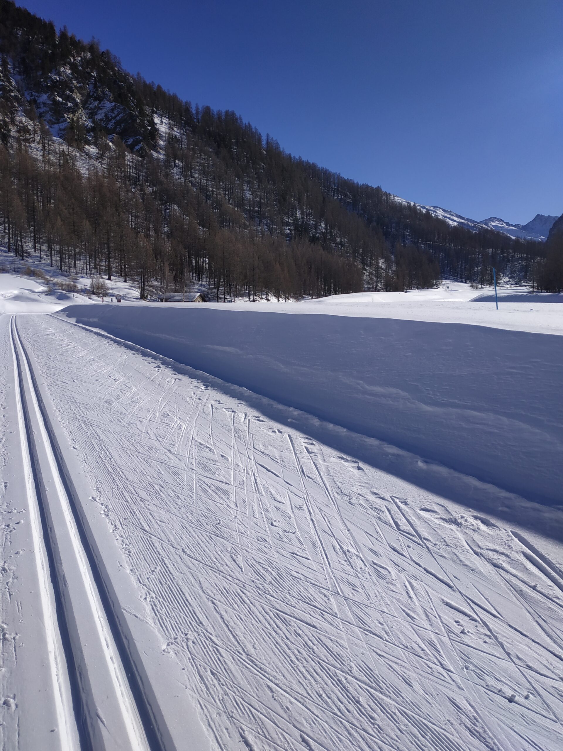 La pista olimpica consiste in un anello di 10 km predisposti per l’innevamento artificiale; la pista turistica si divide in una parte basse di 12 km, dalla frazione Grange sino a quella di Pattemouche passando per Plan e Traverses, e una alta, dal Pount das Itrei sino ai 2045m dell’Alpe del Meys.
