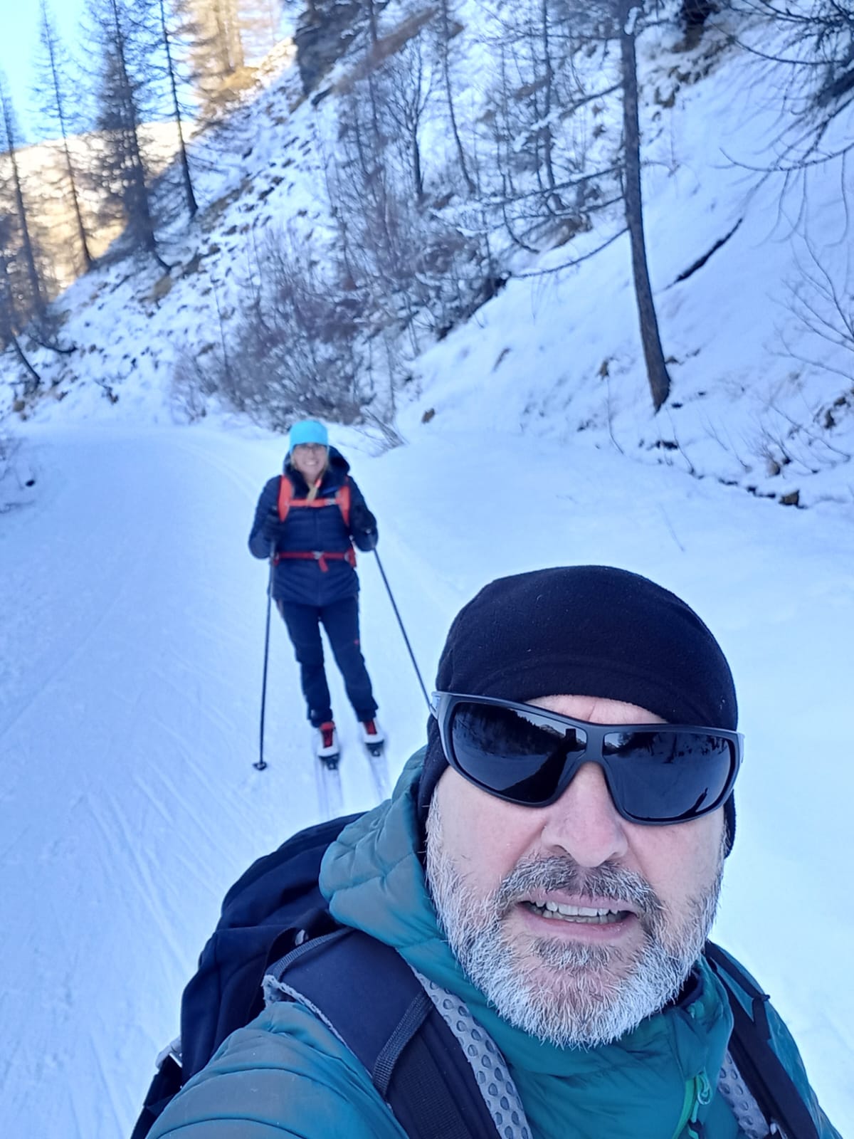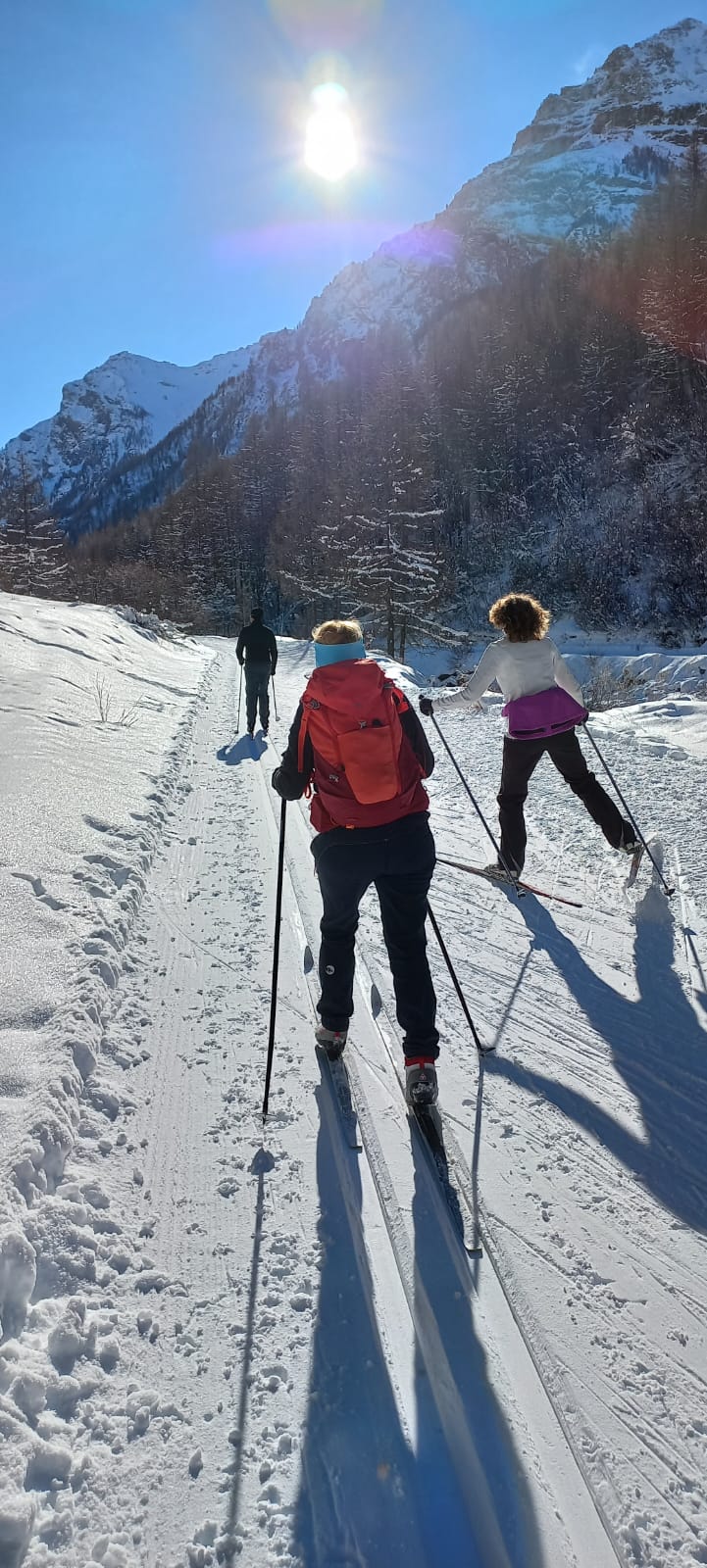 Prima volta con gli sci di fondo con la tecnica classica. Abbiamo fatto l’anello un paio di volte per impratichirci un po’ fino al rifugio La Val.