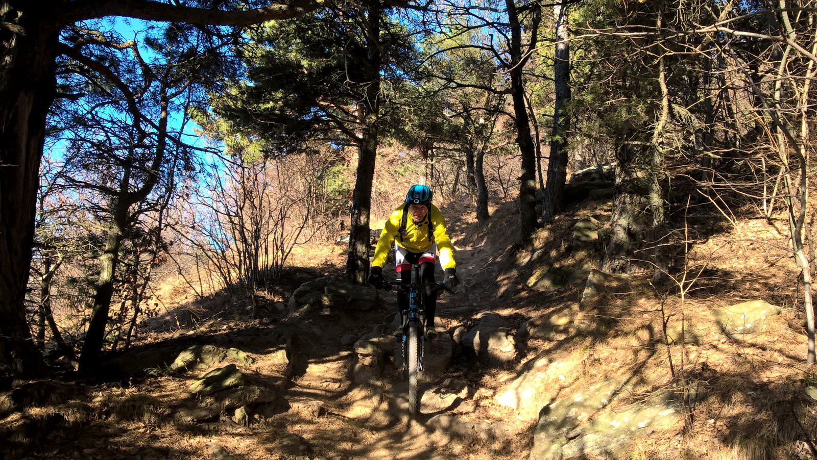 Discesa su sentiero divertentissimo che inizia a fianco della cappella e giù a tutta passando per la bella borgata di Magnoletto, dove si può ammirare un originale e bel Presepe, solo in alcuni tratti occorre prestare attenzione alle troppe foglie che nascondono le pietre, in ogni caso non si tratta di fondo smosso.
