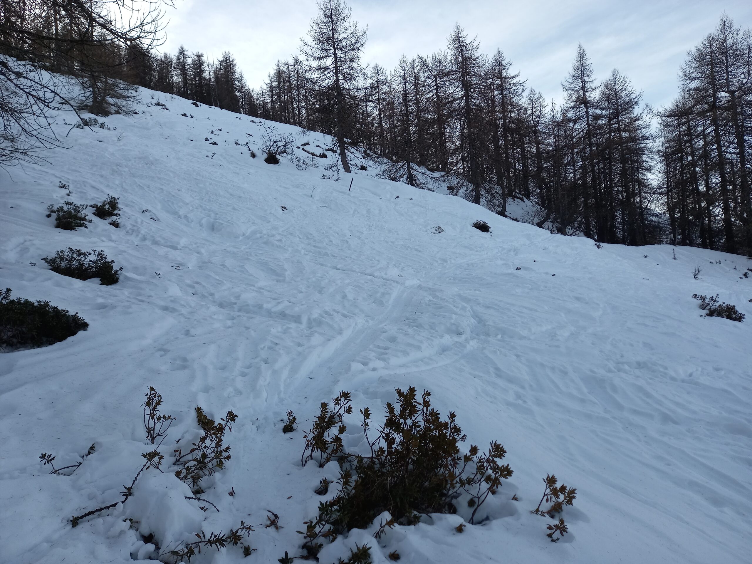 Partito dalla strada (chiusa per innevamento) che porta a Pian Gelassa (o Plon Gelasa). Transitato nei pressi di La Brà (1471 m) e da qui proseguito sino al suddetto Pian Gelassa. Arrivato al Piano ho proseguito diritto su strada innevata che, dopo pochi metri, inizia a scendere. In prossimità di un tornate (vedere foto) ho svoltato a sinistra addentrandomi nel bosco e da qui ho iniziato a seguire le numerose tracce di sci e ciaspole, che, risalendo il pendio (in alcuni punti ripido) mi ha portato alla vetta. Per la modalità di percorrenza del pendio seguire comunque le “tracce”, che facendo compiere un percorso a “Z” (zig zag) permettono di “smorzare” un pochino la fatica…Gita nel complesso mediamente lunga (8 km solo andata) e da affrontare, a mio modesto parere, solo ed esclusivamente con neve “portante” (non si sa mai…). Non ho incontrato nessuno lungo il percorso, escursione in totale solitudine.