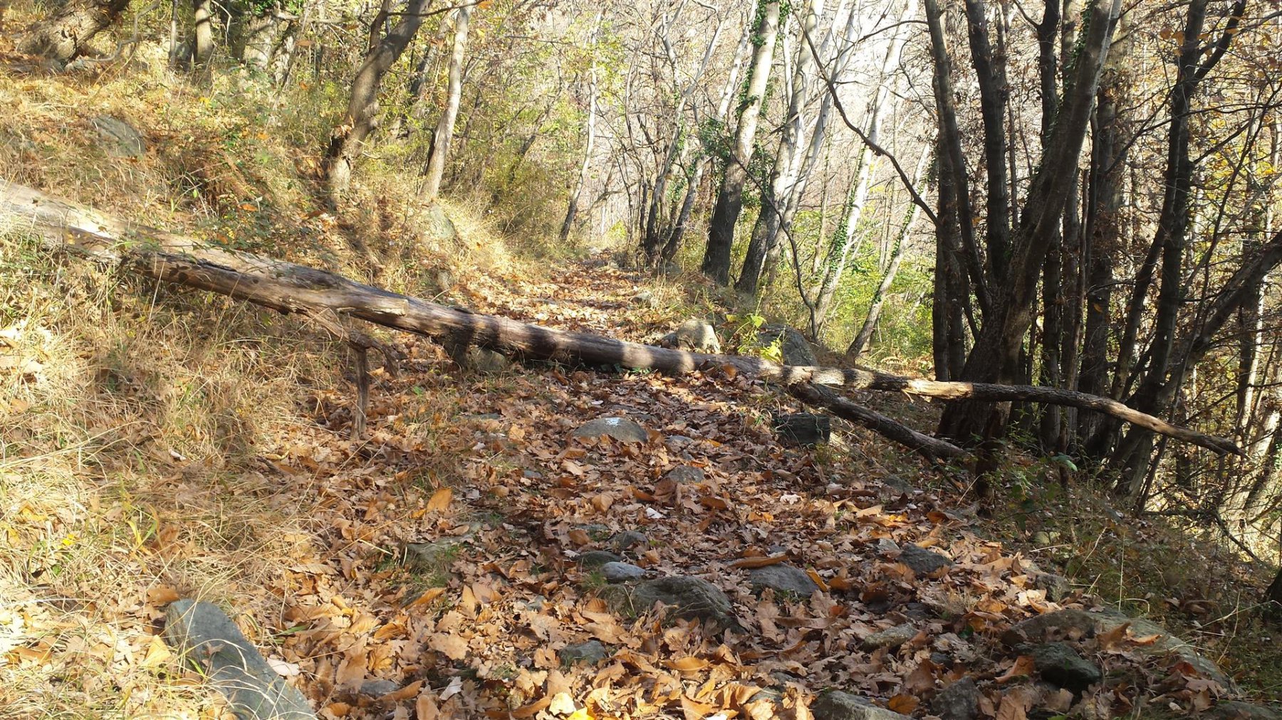 Discesa fino a Sigliodo su fondo asciutto e fermo con foglie che non danno fastidio. Poi quasi tutto su lastricato scivoloso sia per le pietre rotonde e lisce che per le troppe foglie (alcuni alberi abbattuti). No buono.
