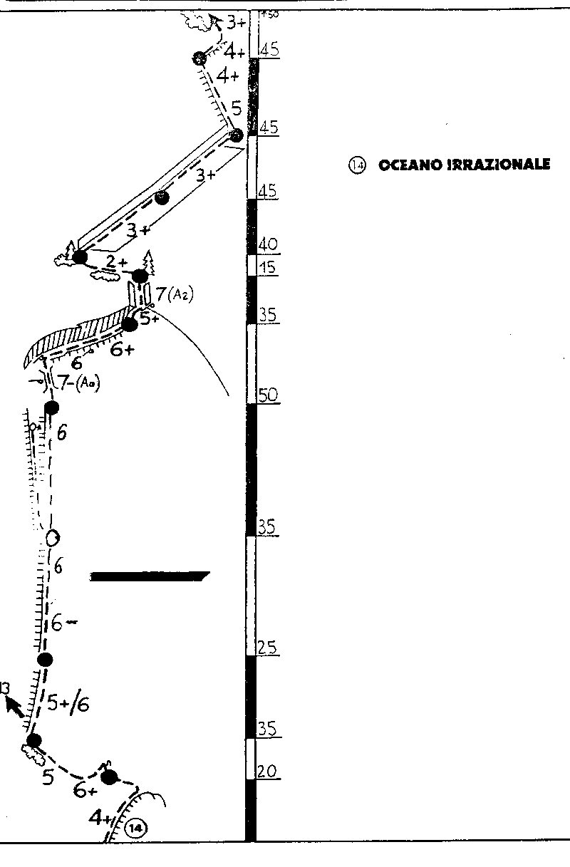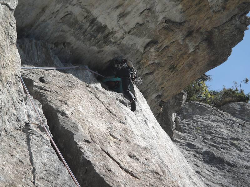 L5 – Tiro della tromba VII molto fisico e sostenuto (con qualche friend grosso si addolcisce)sostare alla fine della tromba o proseguire puntando alla pianta (VI) unendo i tiri