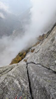 L9 – fessura non banale data di quinto (per me di +)scarsamente proteggibile sostare al termine di questa sostando su pietre e friend