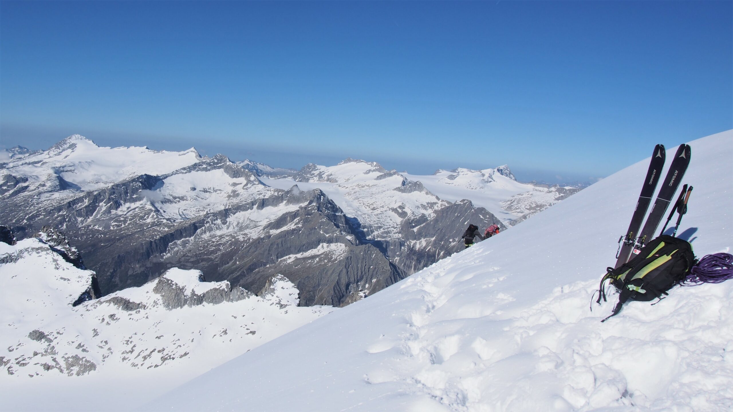 Dalla vetta conviene scendere a piedi fino al canalino, poi si possono calzare gli sci, noi siamo stati sul filo di cresta e poi sulla traccia della normale dove la neve era più scorrevole.