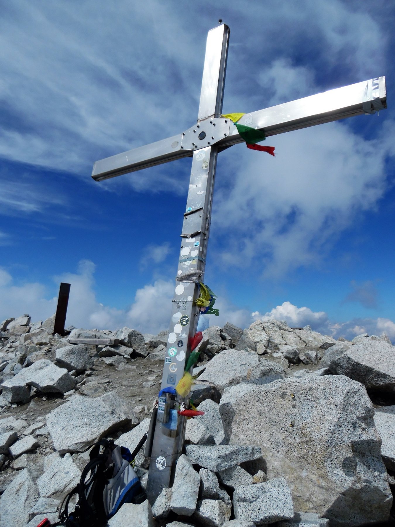 Magnifica salita alla Presanella, in un ambiente granitico unico, di una bellezza strepitosa! Partita dalla fine dell’asfalto (la strada continua ancora un po’ per sterrata fino ad una piccola zona di sosta), poi per la bucolica val d’Amola. Quindi al rifugio Segantini, in una posizione aperta e panoramicissima su tutto il gruppo del Brenta ad ovest e la Presanella dietro (a est). Qui cominciano i bolli tondi bianco rossi lungo il sentiero sopra la morena. Per tutto il resto del percorso si troveranno ancora questi segnavia solo lungo i tratti ferrati. Per il resto si procede a vista per ometti di pietra. Solo tre persone di ritorno dalla vetta: pensavo fosse una cima decisamente più frequentata! Nuvolaglie da tarda mattinata e solita pioggia (e grandinina) di rientro, ormai un cliché di questa estate! La classificazione PD di questo itinerario mi sembra un po’ eccessiva: non si trovano passaggi più difficili del I, massimo II, e comunque buona parte è ottimamente e recentemente attrezzata.