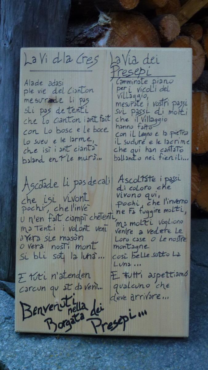 I percorso comincia con il presepe posto dentro la fontana all’inizio del borgo e seguendo i segnavia si attraversa il borgo fino a raggiungere la Chiesetta dove è posto l’ultimo.