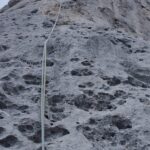 - Doppia da 25 metri alla base della parete, poco distante dall’attacco della via.
